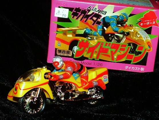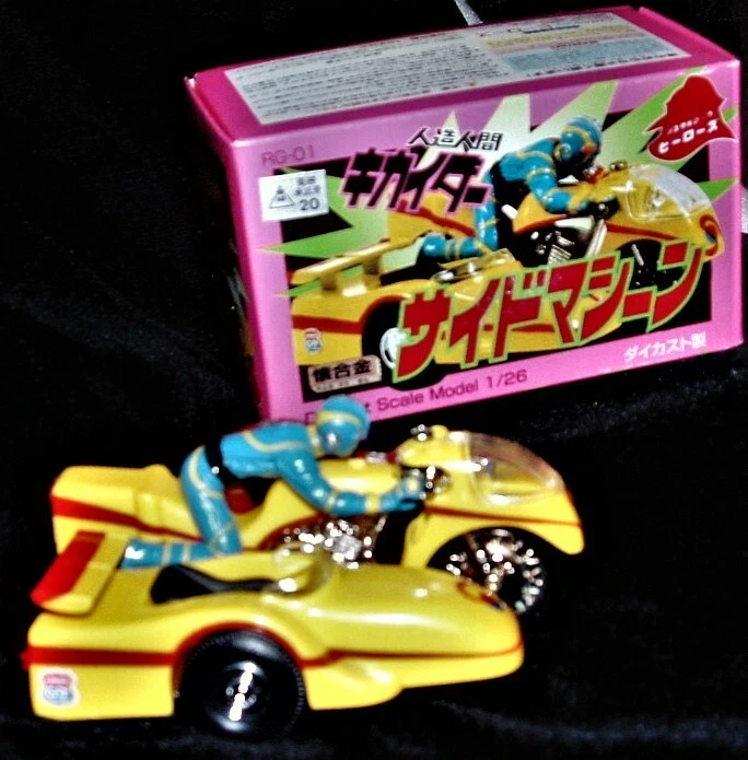 Nostalgic Heroes Retro Gokin RG-01 Kikaider Diecast Side Machine Chogokin MIB Mint in Box Comes with original protection foam 1/26 Scale Retro Gokin Series RG-01 Diecast Side Machine with pvc Kikaider Box : 2.5" x 4.5" x 2.5" Side Machine : 2" x 4" Made by Nostalgic Heroes HOT FLASH!!! KIKAIDER, KIKAIDA, LIVE-ACTION ROBOTS, SHOGUN WARRIORS AND ALL ANIME, SUPERHERO ROBOT, JAPANESE SCI-FI TV, AND MOVIE FANS AND JAPANESE DIE-CAST & ROBOT TOY FIGURE COLLECTORS CHECK THIS OUT! HERE IS A BRILLIANT 4 inch LONG DIE-CAST MOTORCYCLE AND SIDECAR CALLED THE "SIDEMACHINE"! FROM THE BRILLIANT CREATORS AT NOSTALGIC HEROES - FINALLY!!!!!!!!!!!!!! SOMEONE HAS MADE A DIECAST "KIKAIDER" BIKE AND IT WAS WORTH THE WAIT - IT'S AWESOME!!!!, THIS VINTAGE 1970's LIVE-ACTION & CARTOON SUPER CULT SUPERHERO made circa 1990's is perfect! the paintwork and colors are amazing! SO COOL!! AND IT IS WAY, WAY GONE!! THIS COOL DIE-CAST VERSION IS THE ONLY ONE I KNOW OF EVER MADE OF THIS CLASSIC 70's SUPER MOTORCYCLE - THE BIKE KIKAIDER RODE THROUGH ALL HIS ADVENTURES, 45 YEARS AGO! ONE OF THE ALL-TIME GREATEST LIVE-ACTION & CARTOON SCI-FI CHARACTERS. IT COMES IN A BEAUTIFUL ARTBOX JUST LIKE A POPY TOY, AND THIS IS AN ORIGINAL TOY!!! SO DON'T MISS IT!! MINT IN BOX!!! MADE IN A VERY SHORT RUN - THIS IS YOUR CHANCE TO GET ONE, AND, AT A GREAT PRICE. YIPPEEE! (I HAVE MANY DIE CASTS AND VINYLS FROM JAPAN THAT ARE AWESOME, UP ON AUCTION TOO - LOOK FOR THEM - if you win others you can combine them for shipping and SAVE $ !!!!!). OFFERED HERE AT A REALLY LOW PRICE!!! BUYER PAYS WITH PAYPAL or, you may email me BEFORE!!! buying for other payment options, BUYER MUST SEND PAYMENT WITHIN 2 DAYS. THANKS FOR LOOKING! OVERSEAS SHIPPING PLEASE NOTE: The least expensive method to OUTSIDE THE USA is PRIORITY International insured, at OVER $64.00 (ALL overseas shipments MUST be insured, Priority International is the least expensive way to insure). VERY RARE!!!!!!!!!!!!!!!!!!!!! THIS IS MY LAST ONE!!!!!!!!