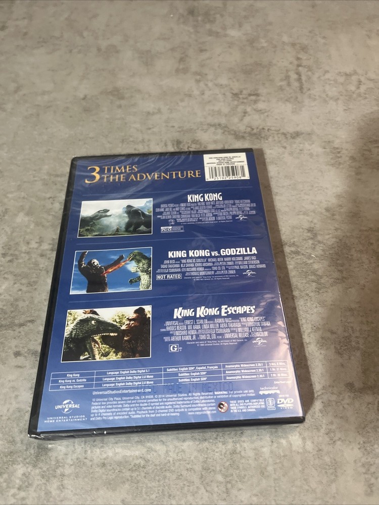Get ready for an epic adventure with this 3-film DVD set featuring "King Kong 2005", "King Kong vs Godzilla", and "King Kong Escapes". Starring Andy Serkis, Jack Black, and Adrien Brody, these films are directed by Peter Jackson and are a must-watch for fans of action, sci-fi, fantasy, horror, drama, thriller, and mystery genres. This box set includes subtitles in English, French, and Spanish and is rated PG-13. The DVD format is compatible with region code 1 (US, Canada...) and comes in a tall/DVD case. Featuring a widescreen format and captioned features, this complete series box set is a great addition to any movie collection.