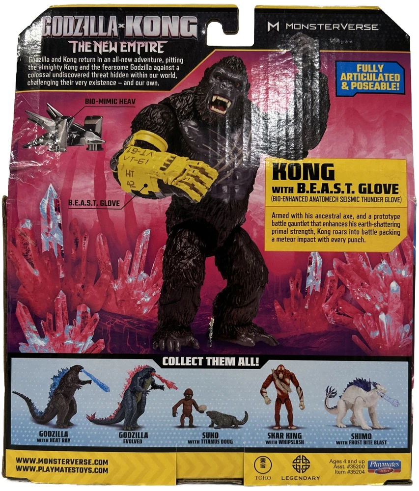 • The Godzilla x Kong 6” Kong figure is highly detailed with intricate designs to capture the essence of the King of Skull Island. • Bring the action home with Kong’s destructive B.E.A.S.T. Glove. The B.E.A.S.T. Glove is highly detailed to match his movie design, adding a realistic element to your playtime or display! • Standing 6” tall, the Kong figure is ready to reign over any display or play setting. • With multiple points of articulation, Kong is ready for action, so you can recreate your favorite scenes from his epic battles!