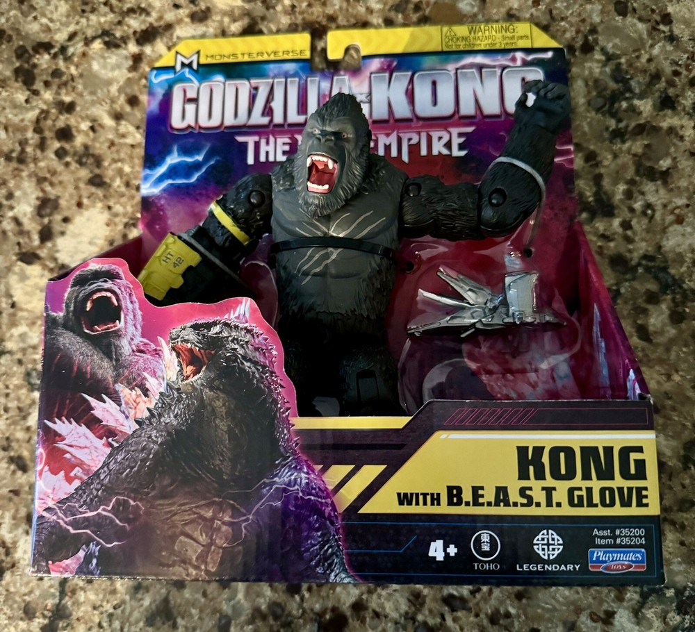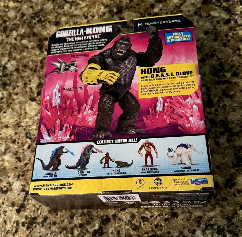 Get ready for epic battles with the Kong w/ B.E.A.S.T. Glove 6” action figure from the Godzilla x Kong The New Empire franchise. This fully articulated and poseable toy features Kong wearing his signature B.E.A.S.T. Glove as seen in the upcoming 2024 movie. The figure comes with Bio-Mimic Heav and is packaged in new 2024 movie-themed packaging. The Kong action figure is made of ABS plastic and plastic materials and stands 6 inches tall. It is an original, licensed reproduction by Playmates Toys and is suitable for ages 4+. Don't miss out on the chance to add this exciting toy to your collection and recreate thrilling scenes from the Godzilla x Kong universe.