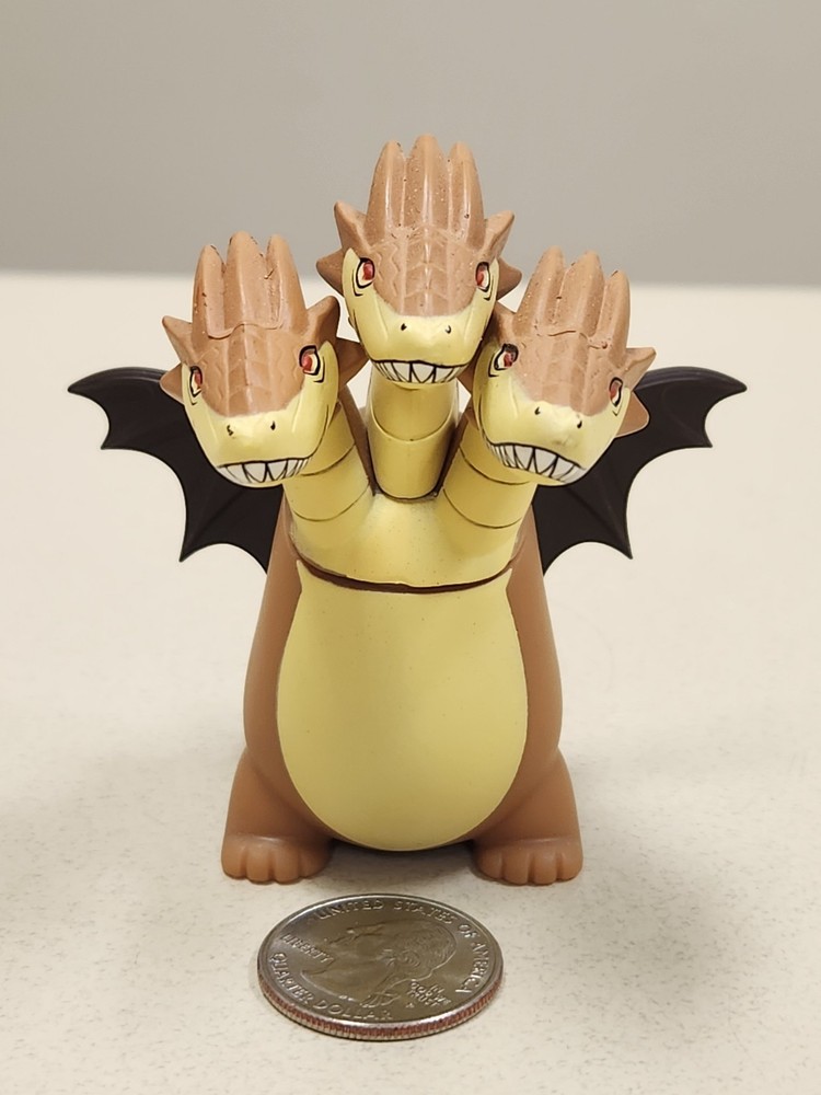 King Ghidorah Kidrobot Godzilla King Of Monsters Vinyl Mini Figure From the Godzilla King of the Monsters Vinyl Mini Figure blind box series by Kidrobot. Released in 2019. One of 13 figures in the set. King Ghidorah Mini Figure - probability 2/24. Please see the photos for size and condition. The figure is in excellent condition. There are no unsightly marks anywhere. The wings are present. One of the heads came loose, but it easily stays in place when displayed. You could put a dab of glue on the neck, and it'll probably be perfect. The figure will be shipped in a mailing box.