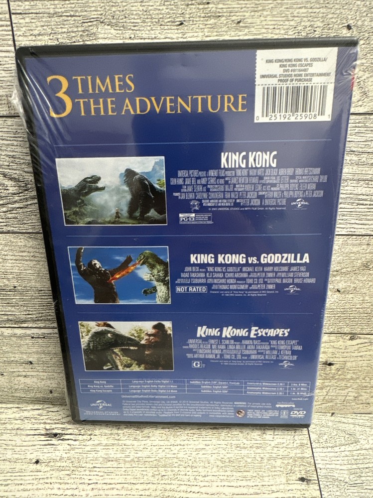This DVD box set features the classic films King Kong, King Kong Vs. Godzilla, and King Kong Escapes, all directed by Peter Jackson. Starring Andy Serkis, Jack Black, and Adrien Brody, these action-packed movies are rated PG-13 and come in a tall/DVD case. The DVD is formatted for Region Code 1 (US, Canada...) and includes English, French, and Spanish subtitles. The box set is perfect for fans of the adventure, horror, and drama genres, as well as those who enjoy cult and B-movie films. The DVD is captioned and features a widescreen format, making it accessible for all audiences. Get ready to embark on an exciting journey with King Kong and his battles with Godzilla and other creatures in this thrilling movie collection.