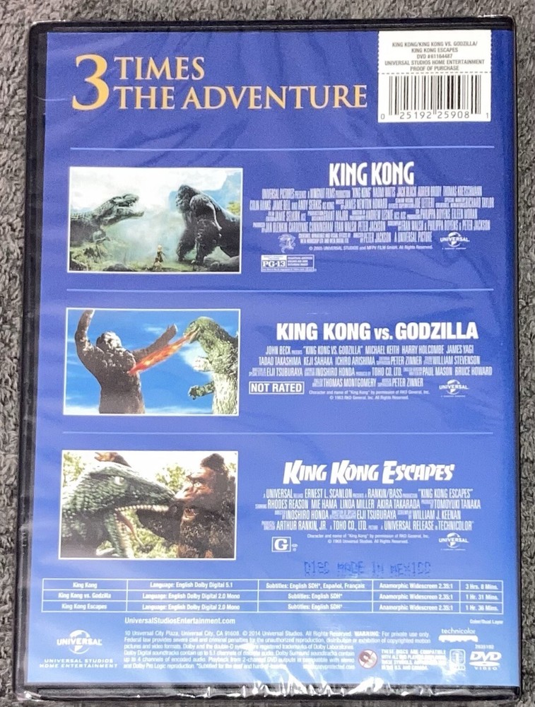 King Kong, King Kong vs Godzilla, King Kong Escapes Triple Feature DVD Sealed.