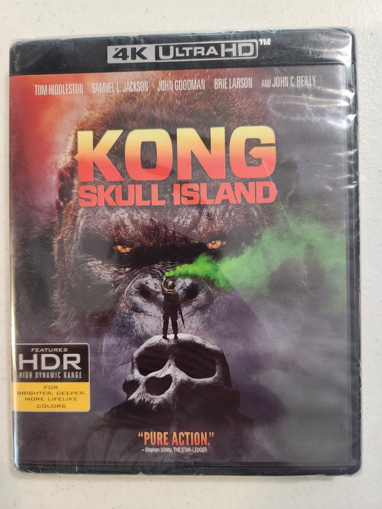 In 1973, government seismologist Bill Randa (John Goodman) sold his superiors on the notion that an uncharted isle in the Pacific held the keys to a generation’s scientific advancement. His ragtag team of soldiers and researchers discovered the atoll’s secrets, to their everlasting terror: scores of bloodthirsty mutated beasts and an uncanny giant gorilla lording dominion over all. Crowd-pleasing re-do of the fright favorite co-stars Samuel L. Jackson, Tom Hiddleston, Brie Larson, John C. Reilly. 118 min. Widescreen; Soundtrack: English. CREDITS: Actors: Tom Hiddleston, Samuel L. Jackson, John Goodman, Brie Larson, Tian Jing Directors: Jordan Vogt-Roberts Writers: Dan Gilroy, John Gatins, Max Borenstein, Derek Connolly Producers: Eric McLeod, Tom Peitzman, Thomas Tull, Edward Cheng, Mary Parent FEATURES: Format: NTSC, 4K Language: English Subtitles: Spanish, French Dubbed: Spanish Region: Region A/1 (Read more about DVD/Blu-ray formats.) Number of discs: 2 Rated: PG-13 Parents Strongly Cautioned Studio: WarnerBrothers Kong: Skull Island 4K ULTRA HD