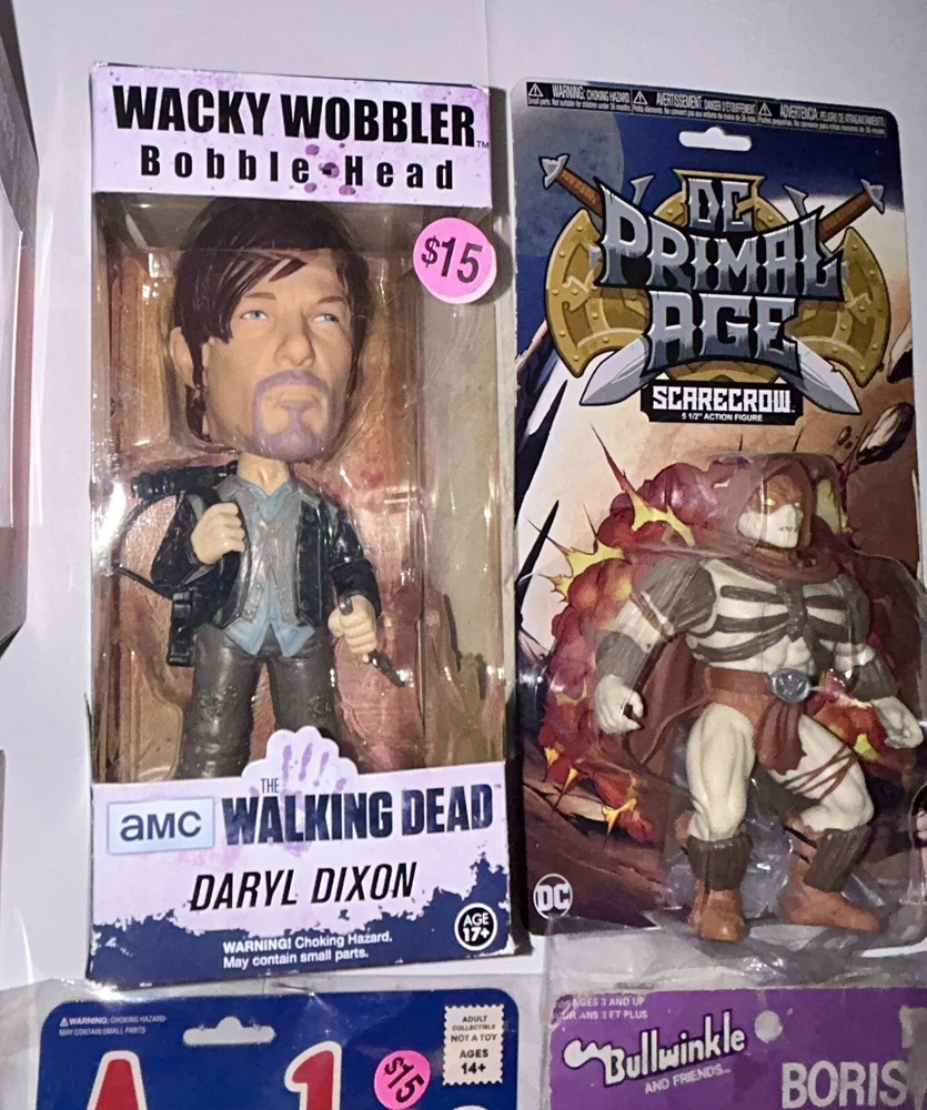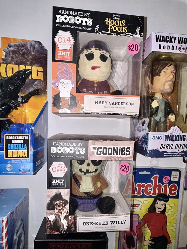 LOT OF NEW IN BOX FIGURES; GODZILLA VERONICA GOONIES HOCUS POCUS FUNKO POP KEYCHAINS DARYL WALKING DEAD FUNKO WACKY WOBBLER DC PRIMAL AGE SCARECROW BORIS VINTAGE BEND EM BUMBLE BOBBLE HEAD 2 FUNKO BLO...