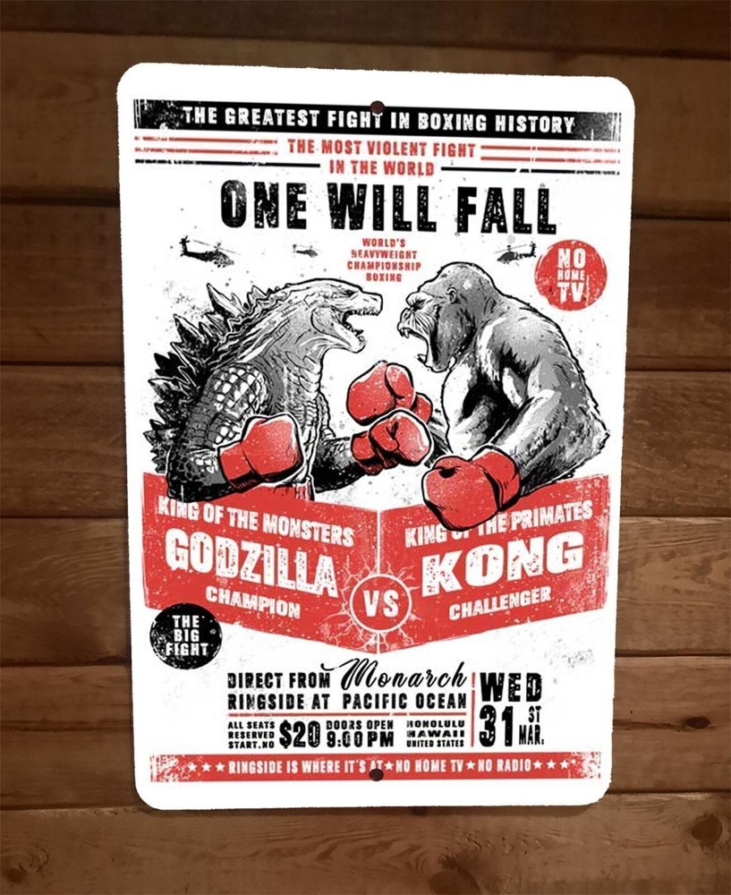Lizard vs Gorilla Kong Godzilla 8x12 Metal Wall Sign Poster The King of Boxing Lizard vs Gorilla Kong Godzilla 8x12 Metal Wall Sign Poster The King of Boxing Some of Our Awesome Sign Categories Alcohol Animals Cars & Garage Cartoons DC Comics Girl Power Marvel Comics MOTU Star Wars TMNT Transformers Video Gamers More Great Sublimation Products We Offer Coasters License Plates Metal Magnets Mouse Pads WICKED COOL SUBLIMATION PRODUCTS We can put pretty much any image you want on a sign, send a message with your idea and we will try to get it done. Cartoons, movie pics, music artist, video games, or whatever! The size of the sign depends on the shape: 4"x12" (the smaller rectangle signs) 8"x12" (our most common, the larger rectangular box looking signs) Brand new, Awesome Graphics Tin Sign with Smooth Rounded Edges for Safe Handling. Premium Quality High gloss aluminum with UV protective coating. Not cheap plastic. Suitable for outside or inside use. Will not rust. Rounded corners and 2 pre drilled holes for mounting. High quality detailed sublimated heat pressed ink that becomes part of the aluminum. Great for businesses, garages, recreation or game rooms, man caves, or anywhere else that needs a sign. Made in the USA More of Our Sign Categories 80s Flashback Classic Cartoons Garbage Pail Kids Looney Tunes Music Military Movies & TV Pokemon Thundercats Vintage Ads Listing and template services provided by inkFrog