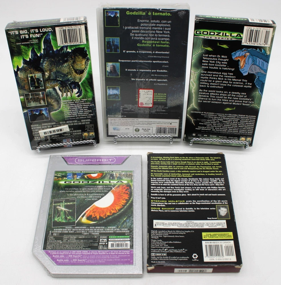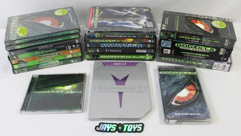 This listing is for a Lot of Godzilla Media VHS CD DVD Blu-Ray Lot is in varying condition with some items being used and some brand new factory sealed. Discs are overall in very good condition with minimal to no scratching. Some discs have some light surface level scratching but look good. Disclaimer: Discs and tapes have not been tested but have been visually inspected and are presumed working. See photos for further details on condition. Item shown is exactly what you will receive. Comes as you see it here. See photo(s). 5B #9842 ------------------------------------------------------------------------------ Shipping within the US will be calculated based on buyer's location. International bidders are welcome, the shipping that Ebay estimates for you will be the correct amount due. We have no control over GSP sent invoices . International buyers take responsibility for any customs/duty fees . We only declare the actual value of the items to customs. We do combined shipping based on weight and final value - please message us with any questions. Items described are actual items pictured and are guaranteed to be as such. Any questions, please ask. We accept returns on all items. Please contact us before using the eBay Hassle-Free Return system to discuss your concerns, as sometimes we can come to an agreement without you needing to complete a return. 3/2025 SC 3/26/2025