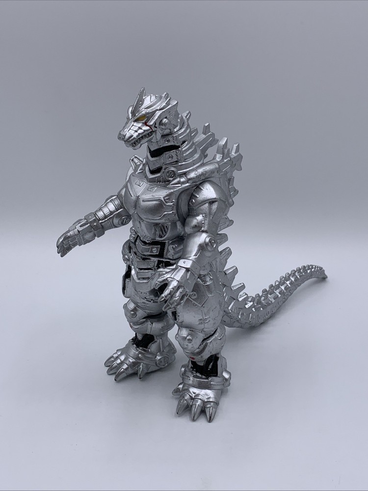 MECHAGODZILLA Godzilla 6 inch Adjustable Vinyl Action Figure 2005 Bandai Figure is in played condition and does have some flaws. Please review photos for item condition.