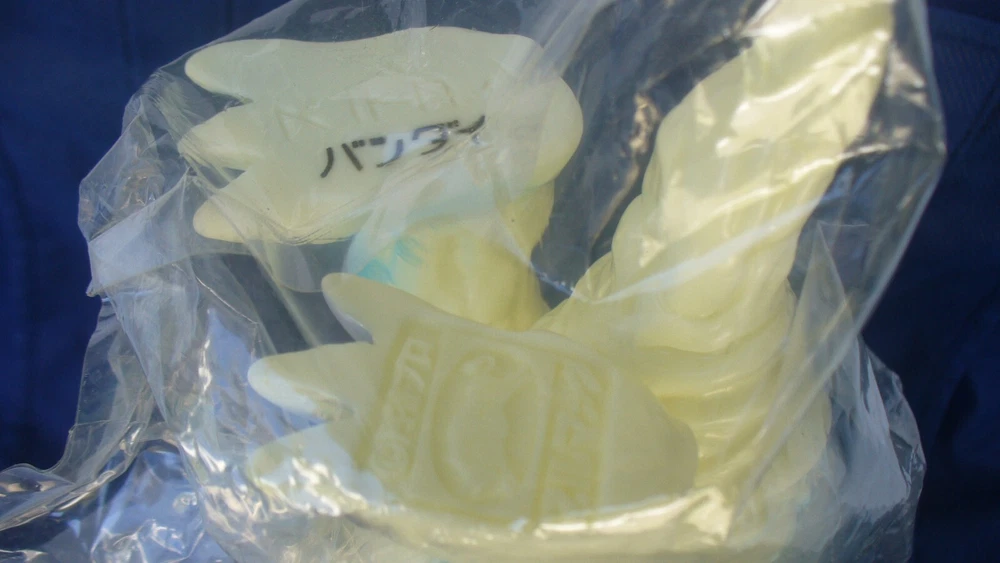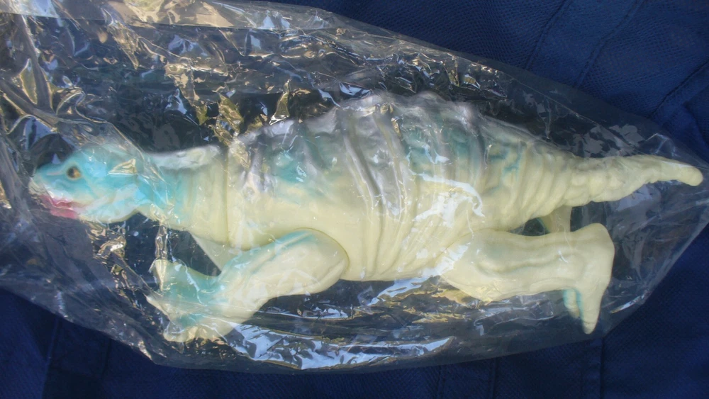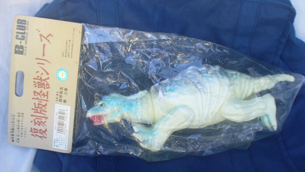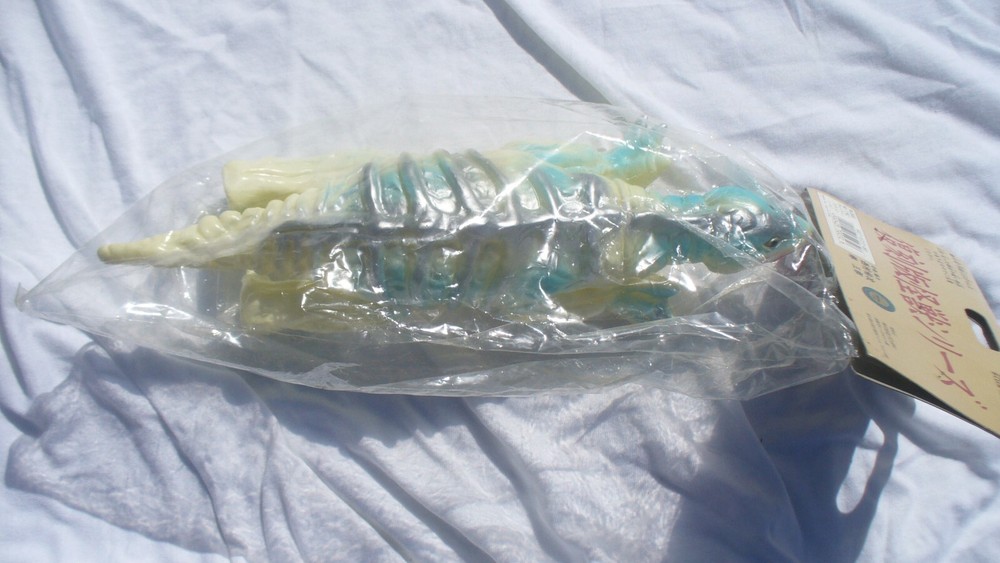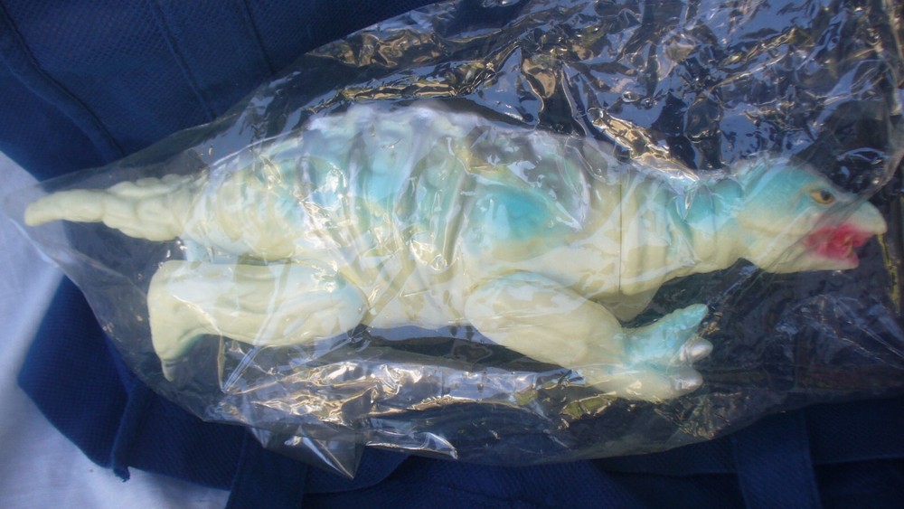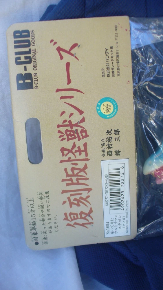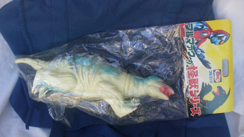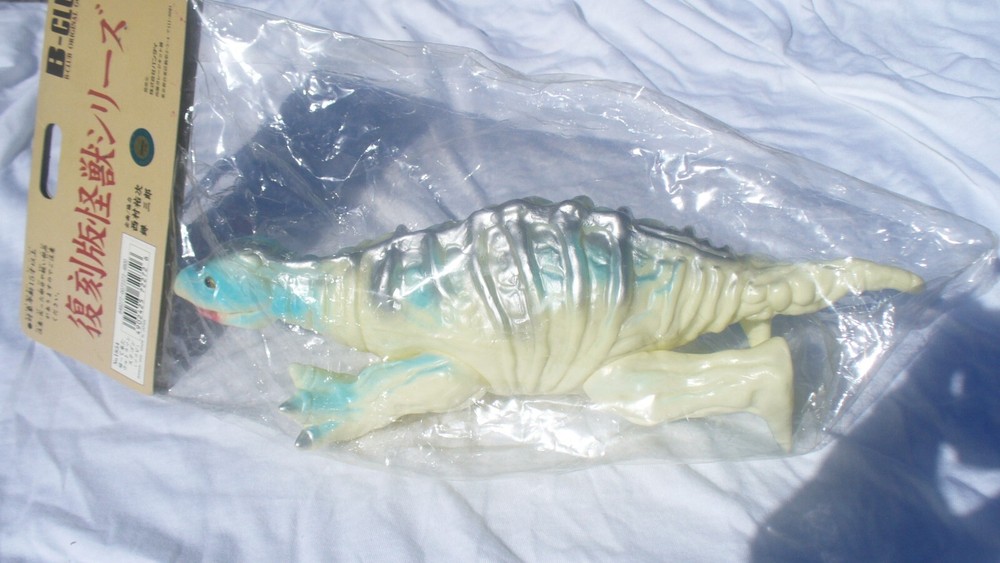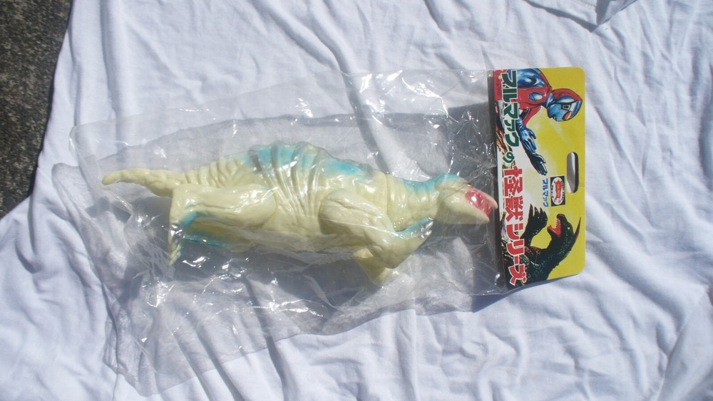Minty in factory sealed bag B Club Ultraman kaiju Sutegon vinyl figure. Figure is light yellow in color with silver and gray spray. From nose to the tip of tail, it measures 11" or 29cm. The header card states Bandai Made in Japan 1999 Bullmark and there is a Tsuburaya sticker on it as well. "Sutegon Bandai" are printed in katakana under the left hind foot. "Bullmark" in katakana along with some kanji are printed under the right hind foot along with the Bullmark logo. The rest of the writings are in kanji.....too much for me to decipher so please feel free to email me with any questions you may have. Please check out my other auctions for more sofubi kaiju that I have for sale. Thanks for looking!