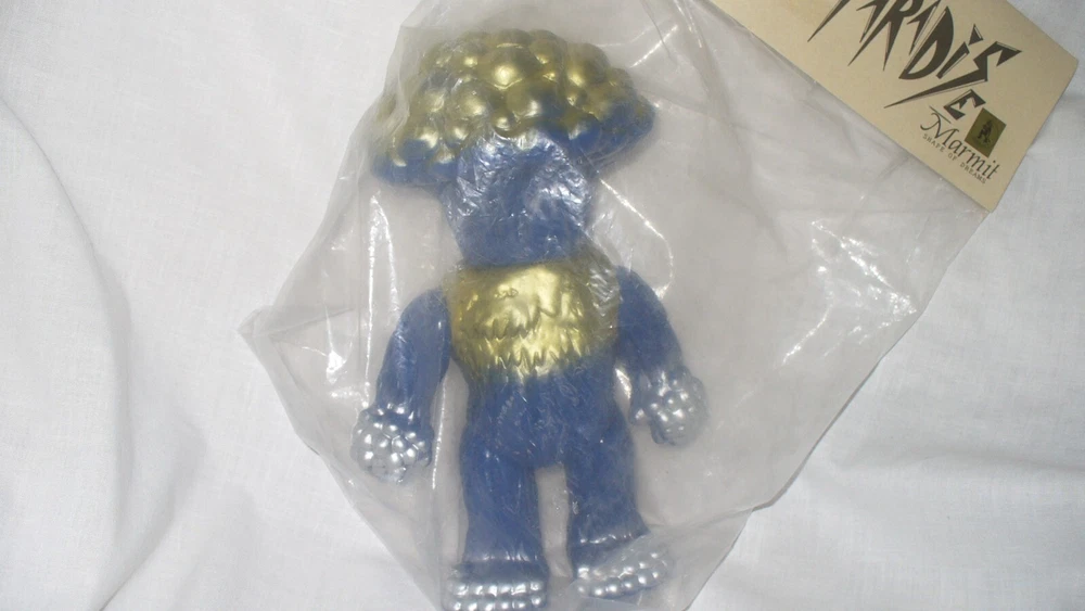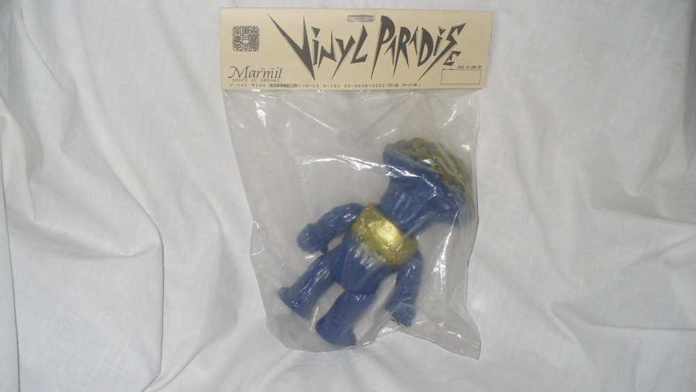 Marmit Shape Of Dreams Vinyl Paradise Matango vinyl figure. From the Godzilla series, this mushroom head bad boy stands 8 1/2" or 22cm tall. Figure is minty in his original factory sealed bag. He is blue in color with silver and gold spray. The year 1997 is stamped under his right foot. The red kanji stamped on the header card states Limited Edition. Questions? Email me! Please check out my other auctions for more kaiju that I have for sale. Thanks for looking!