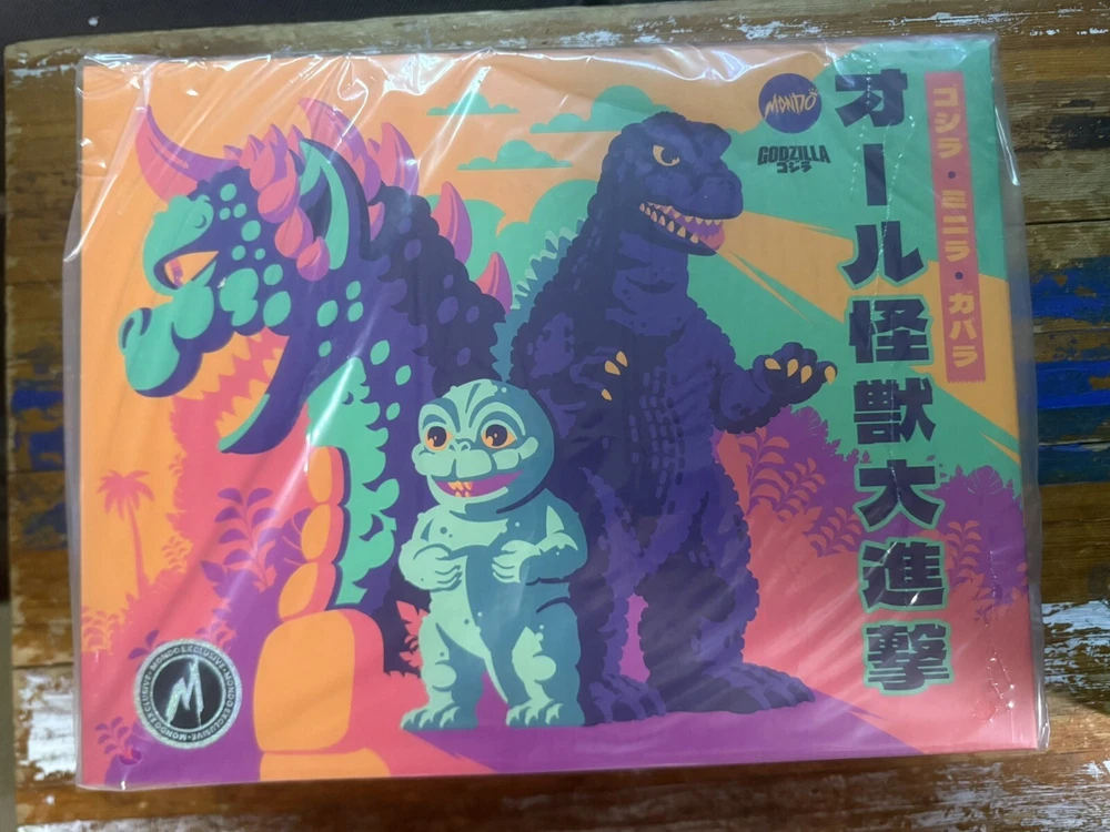 MONDO SDCC All Monsters Attack Soft Vinyl Cherry Blossom Glow In The Dark New and sealed! Ready to ship PRODUCT INFORMATION Edition size: 250 Height: Godzilla - 8" Gabara - 8.5" Minilla - 3.5" Material: Roto Soft Vinyl Weight: 5 lbs The ALL MONSTERS ATTACK - Soft Vinyl Figure Set is back in a signature Cherry Blossom GITD Variant! This limited edition release comes complete with three swivel-articulated kaiju Godzilla, Gabara and Minilla from Toho's 1969 film ALL MONSTERS ATTACK.