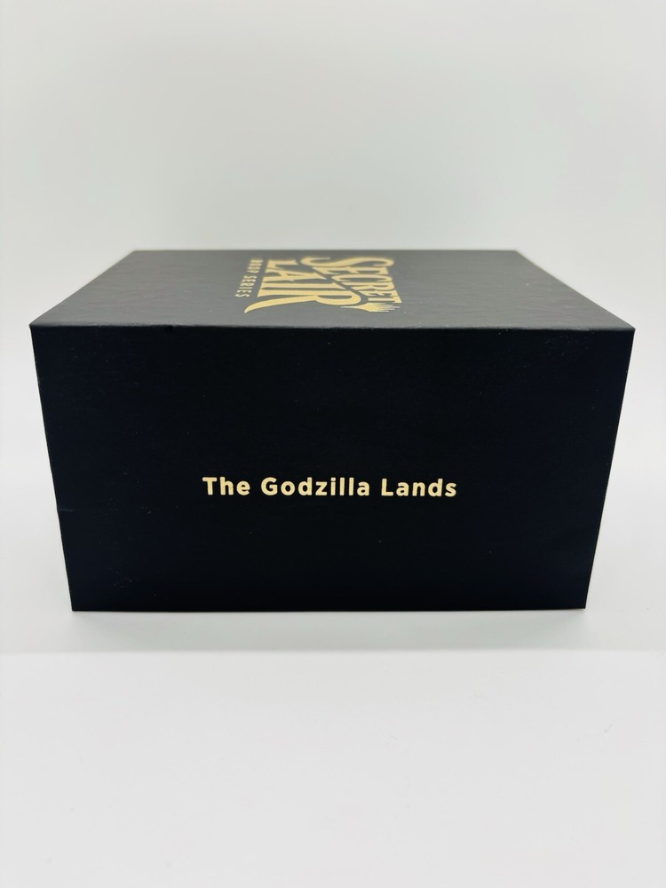 The product is an EMPTY BOX from the Magic: The Gathering Secret Lair Drop Series, featuring artwork of the Godzilla Lands. It is manufactured by Wizards of the Coast. The box is designed to hold cards from the Secret Lair Drop set and is a collectible item for fans of the game.