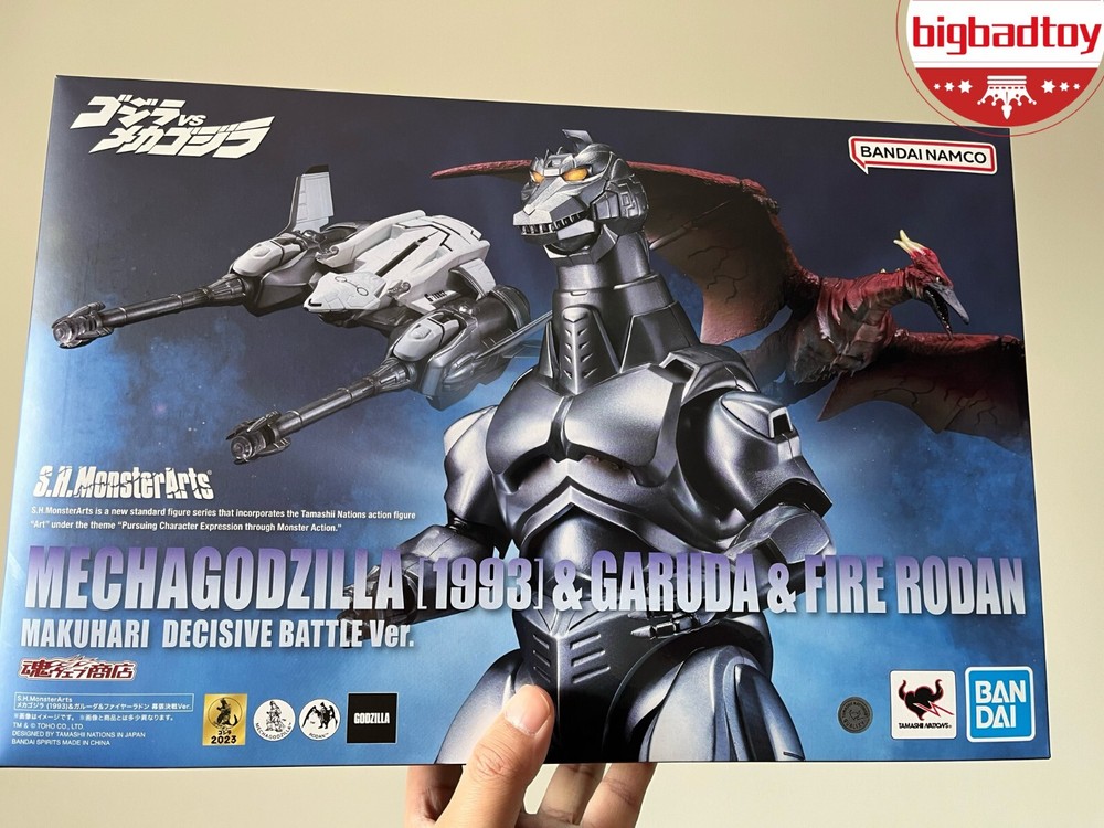 The product is a Mechagodzilla Garuda Rodan Makuhari Decisive Battle SH MonsterArts Figure Toy from the Godzilla franchise. It is an action figure based on the characters Mechagodzilla, Garuda, and Rodan, designed for collectors and fans of Godzilla.