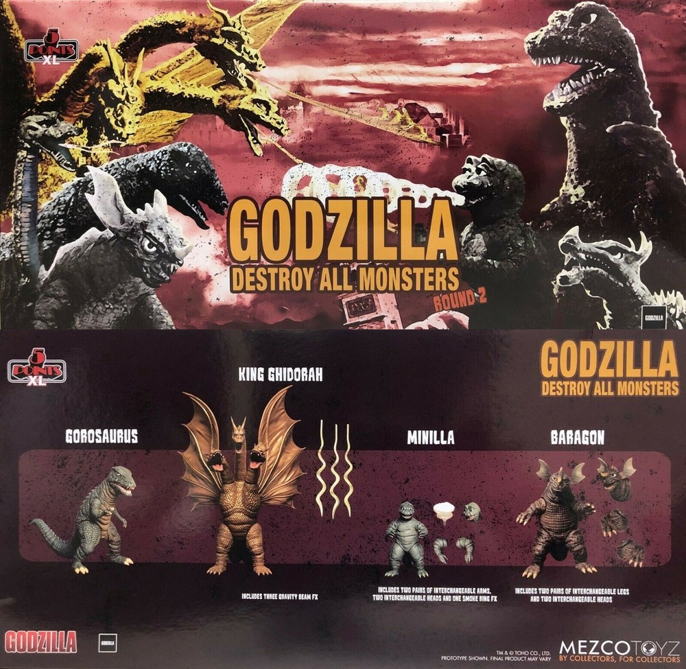 Up for Sale is a Brand New and Factory Sealed Mezco Godzilla Destroy All Monsters (1968) 5 Points Round 2 Deluxe Action Figure Box Set. 5 Points XL - a colossal addition to our nostalgic 5 Points line with the same fan fueled fun, but bigger !!! …It’s a little bit of a big deal. It’s an all-out attack of monstrous proportions as the battle against the three headed kaiju king from outer space continues. This second bursting box of behemoths contains King Ghidorah, Manilla, Gorosaurus, and Baragon and includes select interchangeable heads, arms, legs, or FX. 5 Points XL Destroy All Monsters 1968 Round 2 Set Includes: King Ghidorah – This three headed space dragon is also Godzilla’s arch-enemy. King Ghidorah comes with three gravity beam FX that can attach to his three head portraits. Minilla – Son of Godzilla. Minilla comes with alternate arms, an alternate head portrait, and his signature smoke ring FX that attaches to his head portrait. Gorosaurus – The giant dinosaur that utilizes a leaping kick attack, similar to that of a kangaroo. Baragon – A four legged, horned dinosaur like creature. Baragon is known to leap long distances, burrow deep into the ground, and use his head to get his point across. Baragon comes with an alternate head portrait and an alternate pair of legs. Accessories Includes: * Two (2) Baragon Head Portraits * One (1) Pair of Baragon Legs * Three (3) King Ghidorah Gravity Beam FX * Two (2) Minilla Head Portraits * Two (2) Pairs of Minilla Arms * One (1) Miniilla Smoke Ring FX * Four (4) Display Bases 5 Points XL Destroy All Monsters (1968): Round 2 is packaged in a collector friendly box, designed with collectors in mind. This Set is Brand New and Factory Sealed. We Do Not Guarantee Box/Package Condition or Paint on these Figures. If You Have Any Questions on this Figure Set, Let Us Know. This Figure Set is In Stock and Ready to Ship. Shipping to the United States will be Determined by the Ebay Shipping Calculator. This Includes Full Insurance and Tracking. We ship Internationally, Please use the Ebay Shipping Calculator for a Shipping Price Quote. Pennsylvania State Residents Must Pay 6.00% Sales Tax, (We Don't Keep It. Just Collect It). We Accept Paypal. We are an Ebay Seller with 20,000+ Positive Feedback. Check out our other Ebay Listings. We Have Been Selling on Ebay for Quite a While. We Have Alot of Great Items for Sale. We are Committed to Full Customer Satisfaction. So, Give Us a Try. You Won't Be Disappointed. Check out our Other Ebay Listings. This Ebay Listing is Brought to You by Razor's Edge Collectibles. Thank You For Looking at One of Our Ebay Listings and Good Luck.