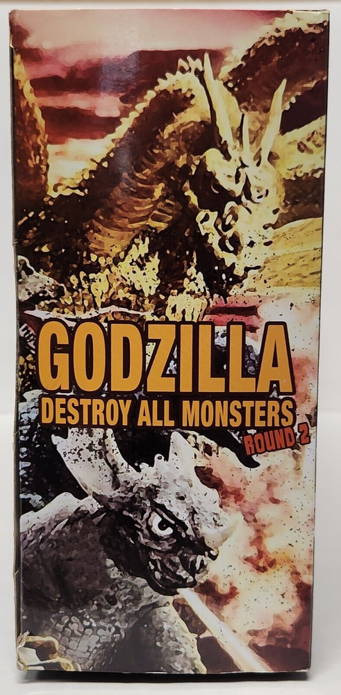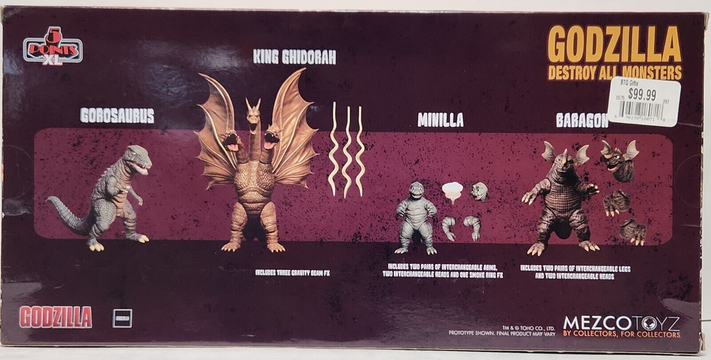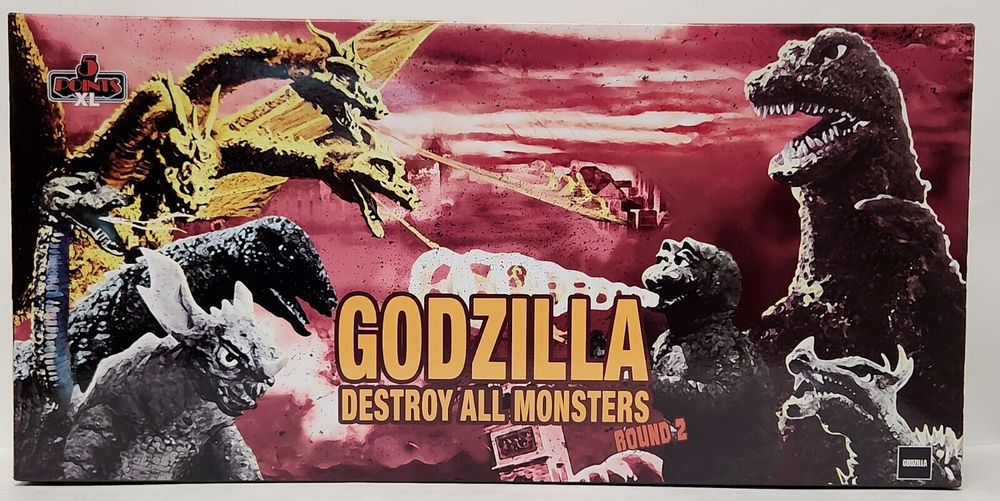 Mezco Toyz Godzilla Destroy All Monsters Round 2 - 5 Points Figure Set MIB. Box is factory sealed and in good condition, although not perfect. Features Gorosaurus, King Ghidorah, Minilla, and Baragon..