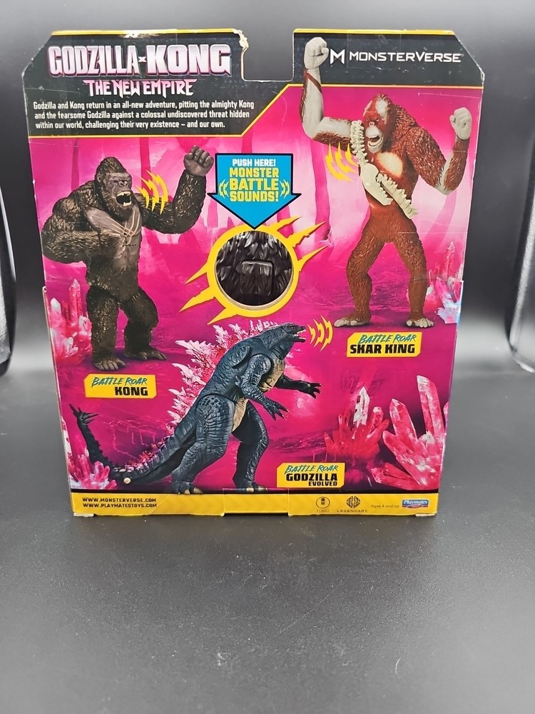 The MonsterVerse GODZILLA x KONG the New Empire (2024) BATTLE ROAR KONG 6" Figure is a licensed reproduction action figure from the King Kong franchise. This colorful plastic figure stands at 6 inches tall and features the character Kong from the movie "The New Empire." It includes a unique Battle Roar feature and comes in its original packaging from Playmates Toys. The figure is part of the Monsterverse series and is designed for children aged 3-4 years old, making it a must-have collectible for fans of the Godzilla and King Kong films.