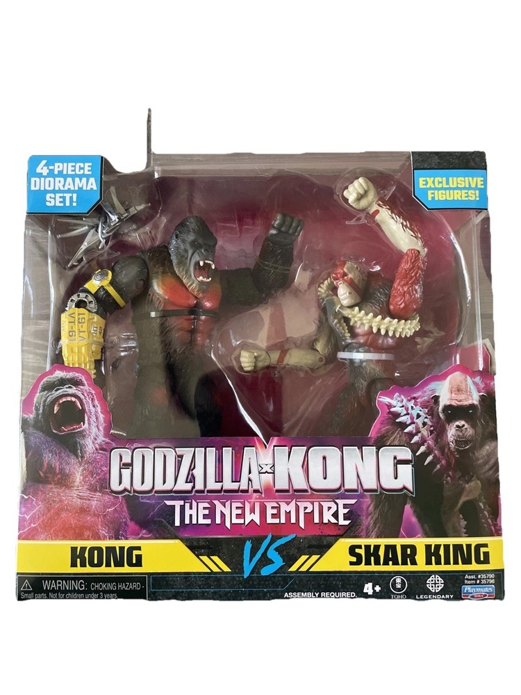 Enter the world of MonsterVerse with the GODZILLA x KONG the New Empire (2024) KONG vs SKAR KING Figures set. This action figure set includes two multicolored plastic figures, Kong and Skar King, both standing at 6 inches tall. The set also comes with a 4pc diorama set to display your figures. This licensed reproduction set is perfect for fans of the King Kong franchise and collectors alike. The figures are in excellent condition, with no signs of wear and tear. Add this fantastic set to your collection today!