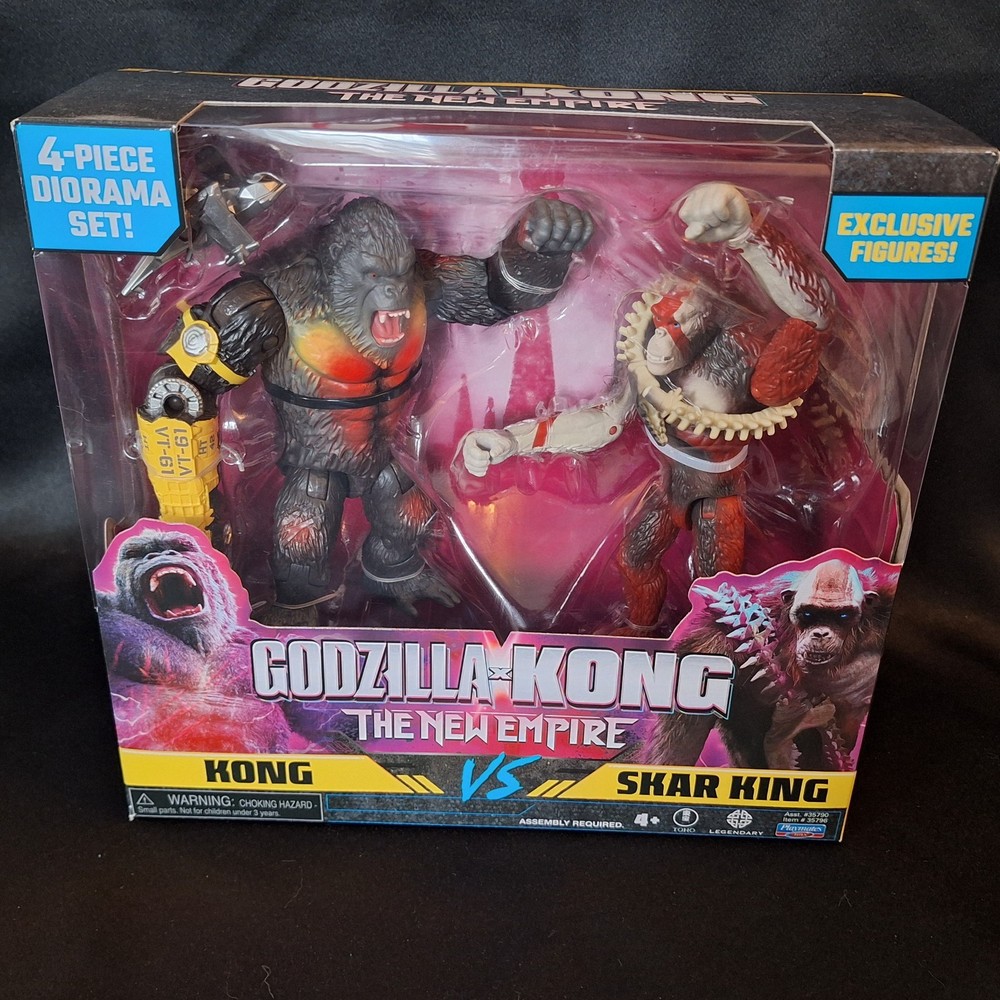 Recreate scenes from "Godzilla x Kong The New Empire" with the multi figure diorama set featuring Kong and the Skar King! The figures in this set feature an exclusive design as well as a mini Heav figure and set effects! Sure to please any fan of the Monsterverse! Actual item appearance may vary. All of our items are in hand and in the USA, ready to be shipped quickly to you! WATCH OUT FOR BOOTLEGS! 😱 There are many cheap bootleg godzilla products on ebay! They usually lack a hang tag, and sport simpler, less detailed paint jobs, which is particularly noticeable on the eyes! Our figures are gaurenteed authentic and brand new, and are inspected for damage! Our items are all shipped using a much recycled ♻️ material as possible while maintaining safety of your purchase. If any issues arrise with your order, don't hesitate to contact us so we can make it right for you ✌️