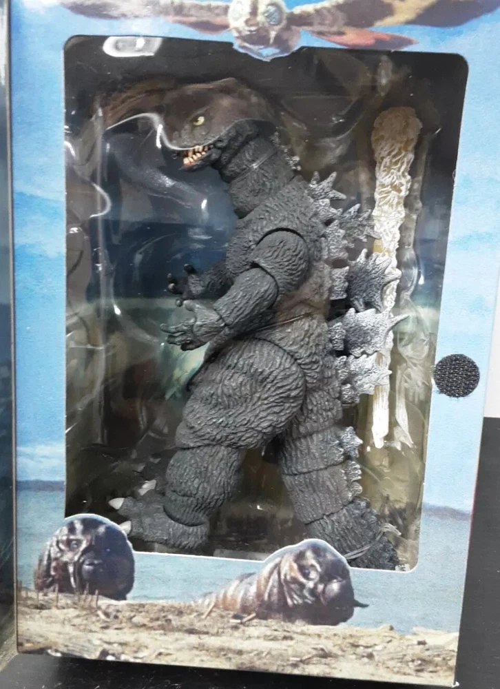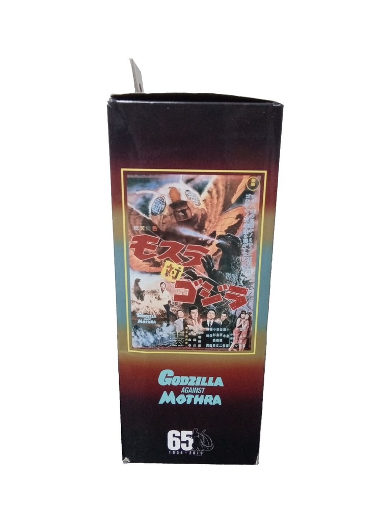 This deluxe 12" head to tail figure of Mothra vs Godzilla from 1964 is a must-have for any fan of the iconic movie monster. The figure is made of high-quality plastic and comes in its original unopened packaging. It features a 1:10 scale and is an original licensed reproduction of the beloved character. With its intricate details and boxed packaging, this action figure is perfect for collectors and fans alike. The figure is recommended for ages 14+ and is part of the Godzilla franchise. Don't miss out on the chance to own this amazing piece of TV, movie, and video game history. Box has some wear. Please see pictures.