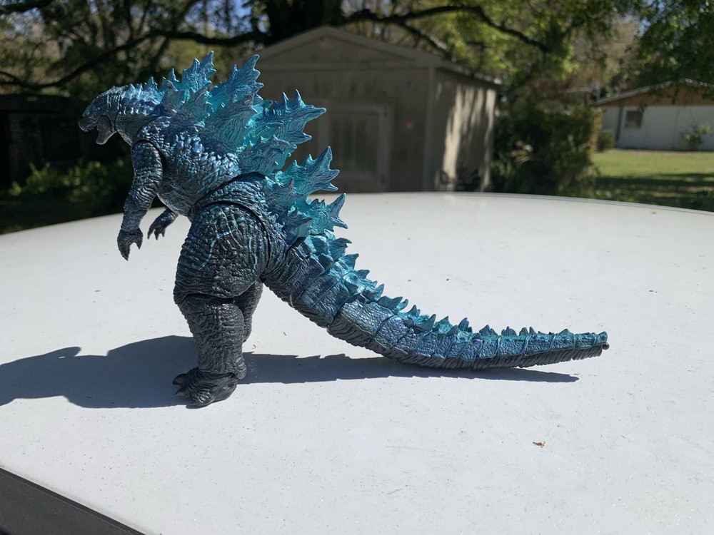 2019 blast effect NECA Godzilla figure. Missing blast effect and very tip of the tail. Figure has some general use with some light paint wear. Would make a great custom figure for repaint.