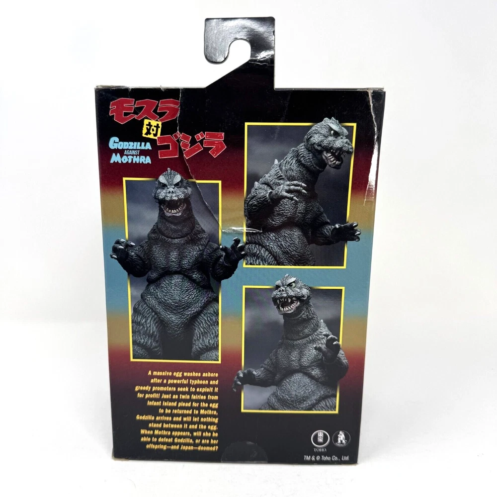 NECA is excited to introduce the next iteration for the most famous kaiju in the world, Godzilla! Based on its appearance in the 1964 film, Mothra vs Godzilla, Godzilla stands approximately 6" tall and measures 12" long from head to tail. Featuring over 30 points of articulation and an articulated tail, Godzilla will come packaged in collector friendly window box packaging with opening flap. Brand new in open box packaging. The back of the box was torn so we removed the contents to photograph. See photos for specific item!