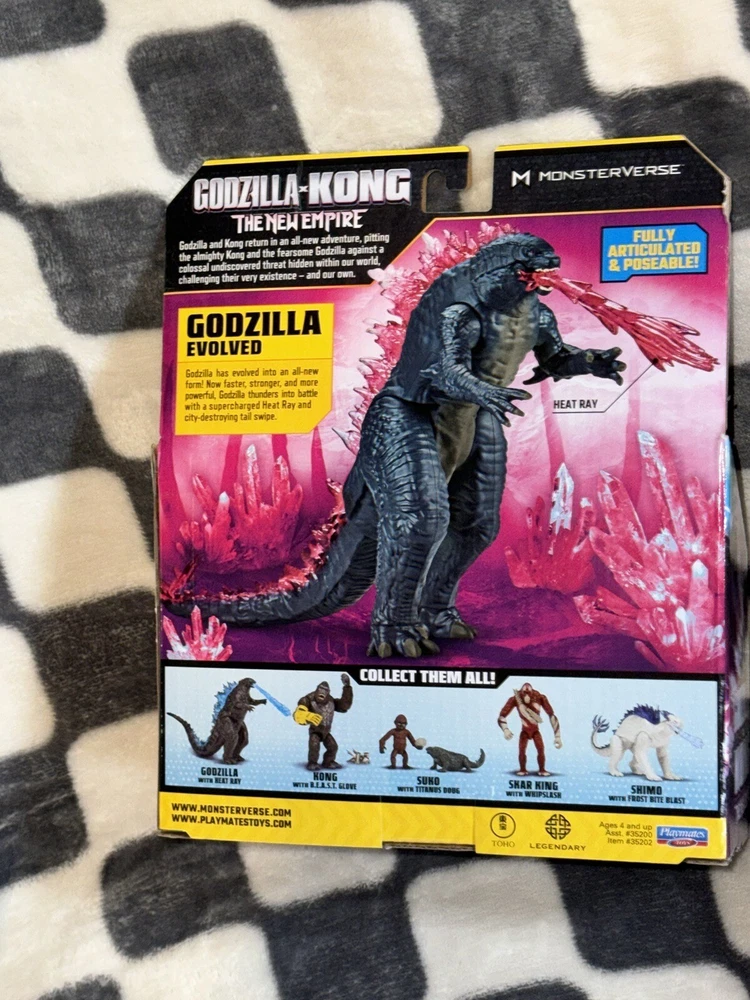 This Playmates Toys action figure is a must-have for any fan of the Monsterverse Godzilla x Kong The New Empire franchise. The 6 inch model depicts the iconic Titanus Gojira in its evolved form, complete with fully articulated and poseable limbs, red translucent spines, and a heat ray. The figure comes in new 2024 movie theme packaging and includes a removable tail, as well as a Godzilla figure. Constructed from high-quality plastic, this original and licensed reproduction toy is perfect for children aged 4 and up, as well as collectors of all ages. The figure is manufactured in China and is part of the TV, Movie & Video Games theme. With its impressive features and accessories, this VHTF item is sure to be a hit among fans. Ships well protected in a sturdy box from a smoke free environment