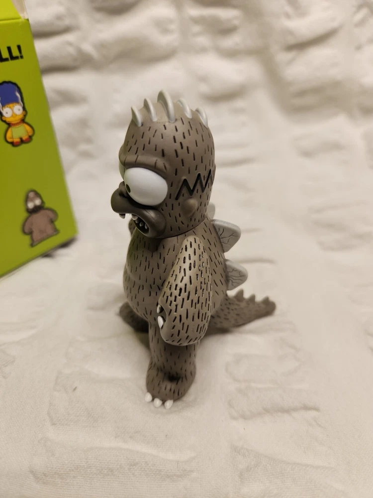This Kidrobot figure is a must-have for any fan of The Simpsons. The 3-inch Godzilla Homer action figure is part of The Simpsons Treehouse of Horror Series 2 collection. The figure comes in a box and is made of vinyl material.