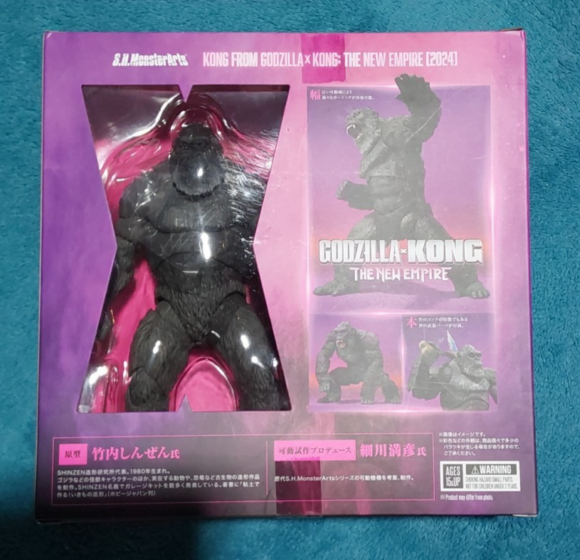 The product is a Bandai S.H.MonsterArts figure of Kong from Godzilla, inspired by the character from the movie Kong: The New Empire. This figure falls under the genre of Science Fiction & Horror, specifically catering to fans of the Godzilla franchise. With a release year of 2024, this collectible item brings to life the iconic monster in a unique and detailed design, making it a must-have for fans of Godzilla and Kong.