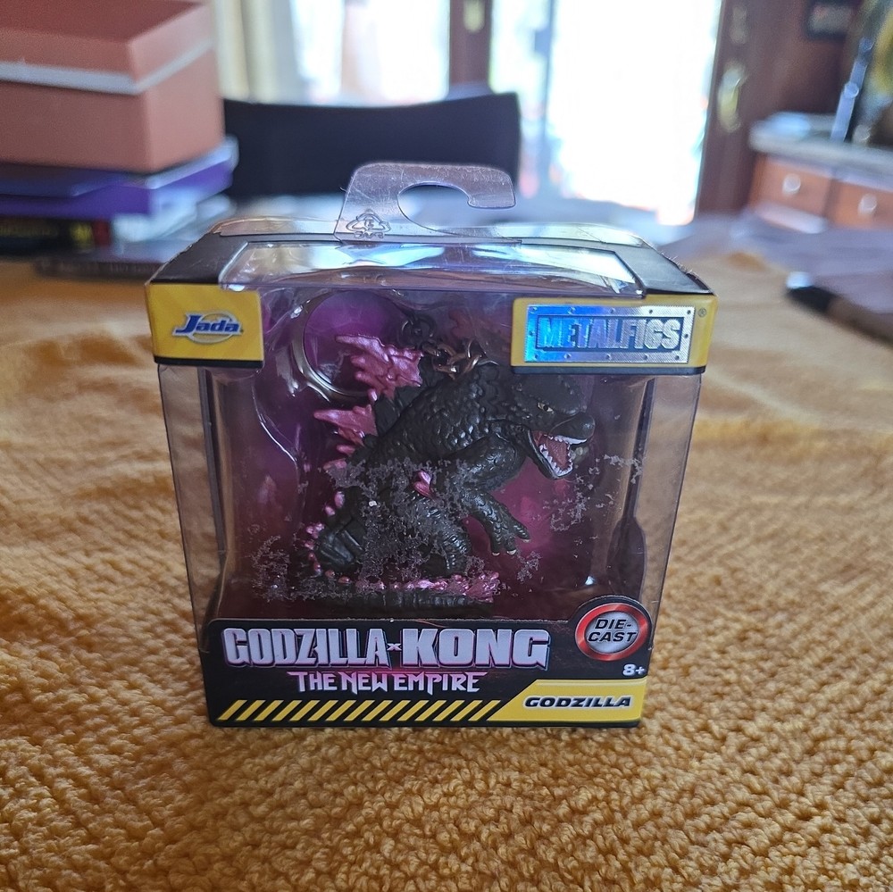 The product is a set of three Jada Metalfigs key chains featuring characters from the Godzilla x Kong franchise. These key chains were released at San Diego Comic Con in 2023 and are exclusive to the event. The characters included are Godzilla, King Kong, and other key characters from the series. The key chains are made of plastic and stand at 1.5 inches in length, 2.5 inches in height, and 2 inches in width. They are part of the Godzilla franchise and are perfect for fans of the TV show and movie.