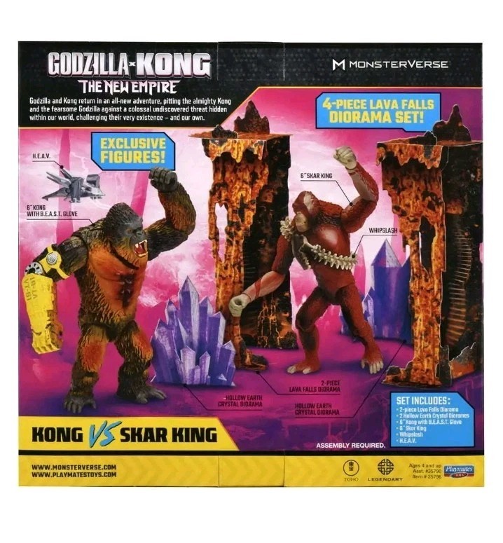 Embark on an epic adventure with the Monsterverse Godzilla X Kong: The New Empire Two Pack Exclusive Set. This collectible duo features the formidable King Kong and his nemesis, Skar King, both expertly crafted in vibrant, multicolor plastic that brings these iconic monsters to life. Designed for fans and collectors alike, each action figure stands at an impressive 9.50 inches tall and weighs 1.8 pounds, with dimensions of 3.50 x 9.50 x 9.00 inches. These meticulously detailed figures capture the essence of the beloved Godzilla theme and are a must-have for any enthusiast's collection. Display them together to recreate the legendary battles or showcase them separately as a tribute to the enduring legacy of these colossal creatures. With their dynamic poses and true-to-character design, these collectible monsters are poised to be the centerpiece of any collection. X2