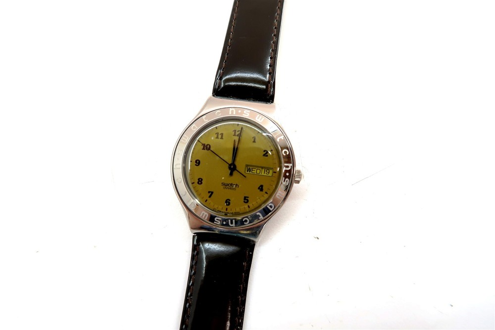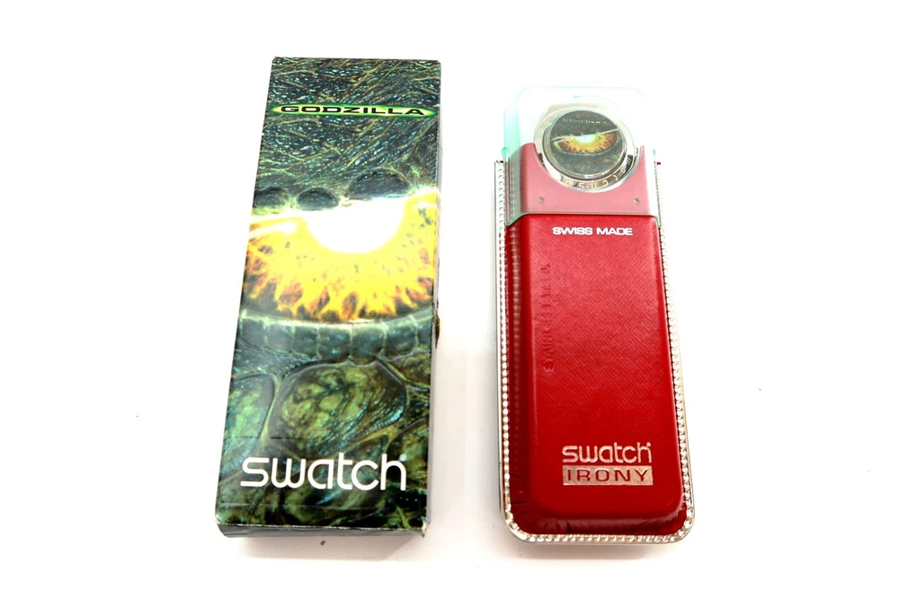 NEW Swatch Irony Watch GODZILLA YGS705 Special Edition with Chestnut Pin This eBay listing is for a New Old Stock classic SWATCH WATCH that comes as you see pictured in the listing and noted above. This watch is brand new and never used before and comes with the original case and paperwork. If you collect classic Swatch Watches, then please check out my other listings in my ebay store for many more great Swatches!! I just picked up close to 800 NOS Swatches from a local auction where I'm told the consignor had one of the largest Swatch watch collection in the United States. This was their 3rd and final auction of Swatches. In total, I purchased close to 1500+ Swatches!! Many of the watches are Special Editions, Limited Editions, Boxed Sets, Scarce and rare models plus other vintage Swatches as well. I will remove all of the old Swatch batteries and will replaced them with brand new batteries to verify that they are all are all in good working condition unless noted below. Please note that vintage and retro Swatches are on the smaller size compared to modern style watches. Most standard Gents (mens) watches have a 33mm-34mm case. I will try to include a picture with each new listing showing the watch next to a standard ruler so that you can see the true size of this collectible Swatch watch. Swatch name : GODZILLA ~ 1st Edition Model : YGS705 New Battery : Yes (due to age, the original battery was removed with a new battery installed) Features/Notes : Works Great! Circa 1996. Limited Edition Movie Special watch with Roasted Chestnut pin on the leather strap. Only 500 watches were made!! Seller Location Reference - Box 71A BID IN CONFIDENCE – CHECK MY FEEDBACK! My goal is your satisfaction. I leave positive feedback right after the payment is received for all orders!! If you plan to leave anything less than positive feedback and 5 stars - please let me know so that I can work out any problems that you may have. I aim to please!! SHIPPING & HANDLING FOR US BIDDERS We ship ASAP upon payment as noted above within 1 business day 99% of the time!! We normally pack up your new treasures 2 - 3 times a day and ship using USPS and Fedex Ground so that you get your items in a timely fashion. As always - there is no charge for local pickup on any of my items!! SHIPPING AND HANDLING FOR INTERNATIONAL BIDDERS Import duties, taxes and charges are not included in the item price or shipping charges. These charges are the buyer’s responsibility. Please check with your country’s customs office to determine what these additional costs will be prior to bidding/buying.” THANK YOU AND HAVE A WONDERFUL DAY!! Powered by SixBit's eCommerce Solution