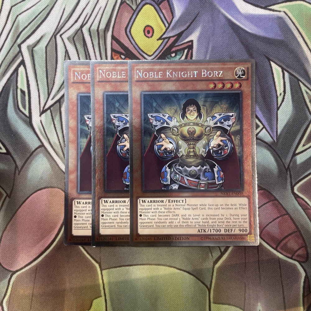 This playset is mixed edition (you will receive a mixture of unlimited and 1st edition cards) Listing Template 2018 Home About Us Shipping Returns View Feedback Contact Us NKRT-EN009 Noble Knight Borz Platinum Rare x3 Excellent Condition Yugioh These cards are in near mint condition. Thanks for viewing! Thanks for viewing! Please check out our eBay store for more cards and don’t forget to use our promotional offers to save money on multiple items! We offer COMBINED INTERNATIONAL SHIPPING! Please contact us and ask us to combine multiple cards in your shipment to save on postage costs! International tracking is included on all orders over £40. If you require a tracking code under this amount it is an additional charge of £6.50. Please add this to your order or contact us for more information. We provide postage free in the UK! All of our single cards are sleeved, with a taped Toploader to ensure maximum protection, and the best overall condition of your cards! Combined orders may in the same sleeve, unless requested otherwise. Do you want to earn extra cash for your old cards? Clear out your binder and send us photos of what you have! We will happily send you an offer and sort out postage to make it hassle free. There's no harm in trying! Message us now! Free UK Delivery! Honest Sellers. We take care of the cards so you can worry less about the fuss and more about winning, competing and collecting. About Us We started selling collectable cards over 6 years ago after selling off our own childhood Yu-Gi-Oh collection. We then rediscovered our passion for trading card games. Ever since, my brother and I have been trying to ensure that we provide a range of cards within the fastest possible time to ensure you can build your collection as you’d like it! With over 35,000 positive feedback we strive for quality customer service, aiming to give the service that we would like to receive and stock a huge inventory of new and vintage collectable cards from popular games such as Yu-Gi-Oh and Pokemon so there’s something for everyone! Our goal is that we hope to build a collectable card community as passionate about collectable cards as we are! Contact Us The best way to get in contact is through eBay’s ‘contact seller’ button where we’ll try to get back to you as soon as possible. Feedback We always prioritise your buying experience so you can shop without worry. Contact us if there’s any part of an order you were dissatisfied with as we hope to resolve any issues as soon as possible. Buy with confidence. View Our Categories