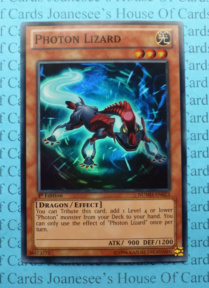 This is the Super Rare Foil Light Dragon Unplayed card with minor edging on top right corner Photon Lizard NUMH-EN023 1st Edition English NMint/Excellent (LP) Condition Totally Original Konami (or your money back!) I will deliver in safe packaging to keep it in perfect condition. Ideal for players and collectors alike. Check out my other items! I will combine postage costs for multiple purchases. Sign up for my email newsletters by adding my eBay Shop to your favourites