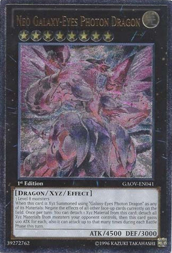 Please, carefully read the following: Image shown is a stock photo and does not reflect the actual card you will be receiving. Please refer to the condition guide below, the title and item description for what you will be receiving. Please also be aware that due to plastic shortages, orders may not always come in a plastic toploader but will always be protected as much as possible to prevent damage. You will receive 1x Neo Galaxy-Eyes Photon Dragon - GAOV-EN041 - Ultimate Rare - 1st Edition - Condition: Heavily Played Please refer to the Title and Item Description above for the item being purchased. Delivery delays: Deliveries may not always fall within the estimated delivery dates when shipping outside of Canada and USA. Many factors may contribute to delays in delivering the package such as weather and customs. Please note that delivery to international locations may take up to 8 weeks to arrive . We always ship out orders within 1 business day and after dropping off with the post office, delivery times are out of our control. Feedback: We will always leave positive feedback for you and we ask if you can do the same for us. If there is any reason why the transaction was not up to your expectations, please message us before leaving feedback so we can address the issue. Combined shipping: To receive a combined shipping quote, please make sure that you commit to purchasing on ebay.ca . This allows us to send you a combined shipping invoice before payment. Shipping within the USA (6-10 Business days): FREE! Shipping within Canada (3-8 Business days): FREE! Shipping and handling delay: We aim to ship all orders within 1 business day. We do not ship on weekends and holidays. Condition Guide: We do not sell any cards that are in MINT condition, the best condition that we offer is near mint. Near Mint (NM) - Cards in Near Mint condition show minimal to no wear from shuffling, play or handling and can have a nearly unmarked surface, crisp corners and unblemished edges outside of a few minimal flaws. A Near Mint card may have a tiny edge nick or a tiny scratch or two, but overall look nearly unplayed with no major defects or flaws. Lightly Played (LP) - Cards in Lightly Played condition may have minor border or corner wear or even just slight scuffs or scratches. There are no major defects such as water damage, bends or issues with the structural integrity of the card. Noticeable imperfections are okay, but none should be too severe or at too high a volume. Moderately Played (MP) - Cards in Moderately Played condition exhibit condition issues visible at a casual glance. Cards in Moderately Played condition can have border wear, corner wear, scratching or scuffing, creases or whitening, minor dirt buildup or any combination of mild examples of these marks. A Moderately Played card may have some form of a more major marking, such as spot water damage or creasing that doesnʼt affect card integrity, but not in combination with other issues such as scratches, scuffs or border/edge wear and not impacting a large area of the card. Heavily Played (HP) - Cards in Heavily Played condition show a severe amount of wear. Heavily Played condition can include cards that have major creasing, major whitening, major border wear or any combination of those flaws. (These flaws cannot prevent the card from being tournament playable when sleeved.) Damaged - Cards in Damaged condition can exhibit a tear, bend or crease that may make the card illegal for tournament play, even in a sleeve. Cards in Damaged condition may have extreme border wear, extreme corner wear, heavy scratching or scuffing, folds, creases or tears or other damages that impacts the structural integrity of the card.