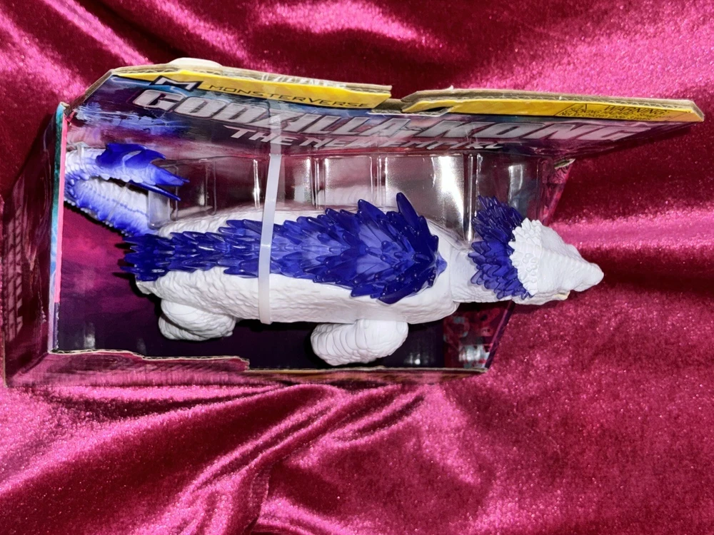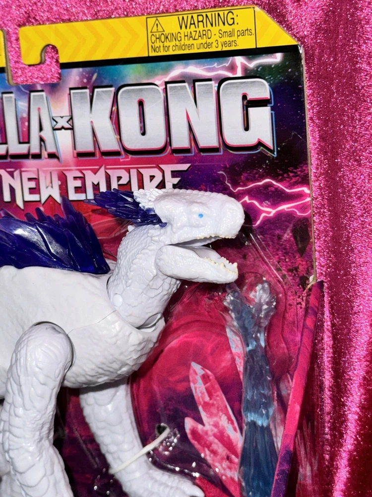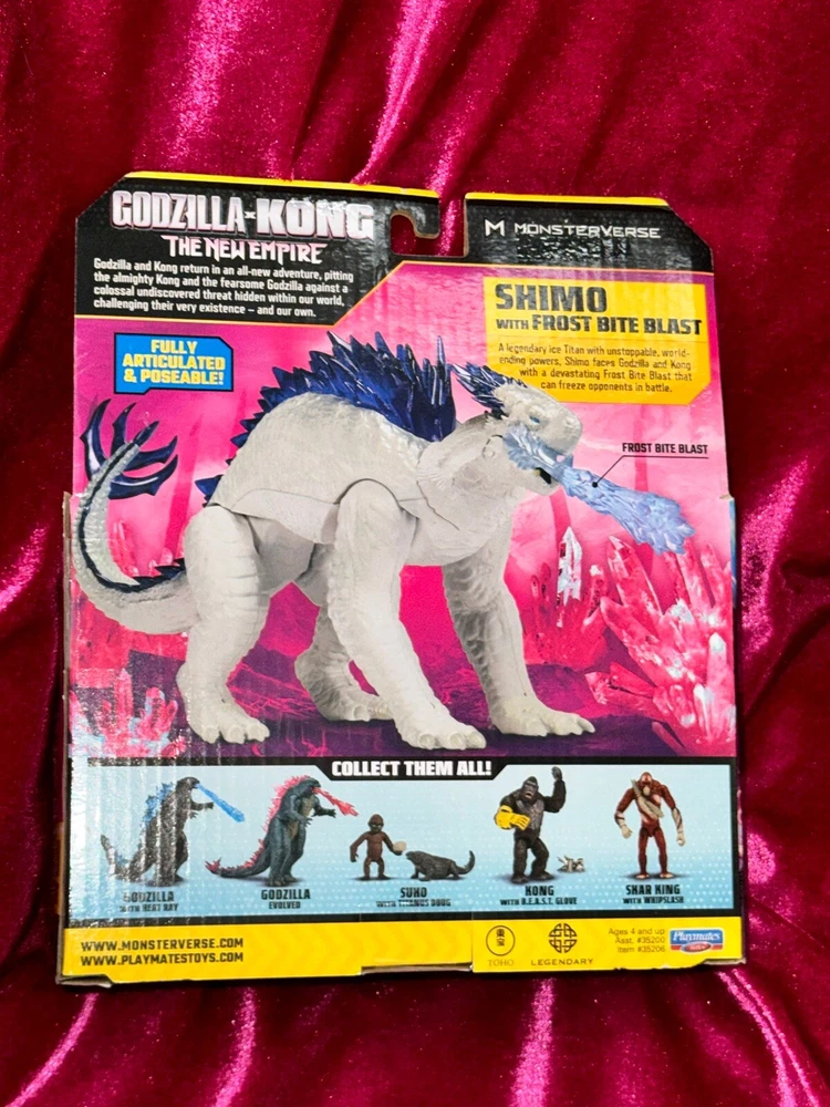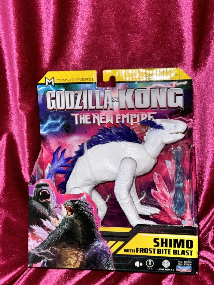 Bring the epic battle of Godzilla x Kong The New Empire to life with this Shimo action figure from Playmates Toys. This fully articulated and poseable figure comes with a removable tail and a blue frost bite blast, perfect for recreating your favorite scenes from the movie. The packaging also features a new 2024 Godzilla x Kong movie theme. Made of high-quality plastic, the Shimo figure is designed with attention to detail and features purple crystalline spines. Suitable for ages 4 and up, this original action figure is a must-have for any fan of the Godzilla franchise. Get your hands on this amazing toy today and join the fun!