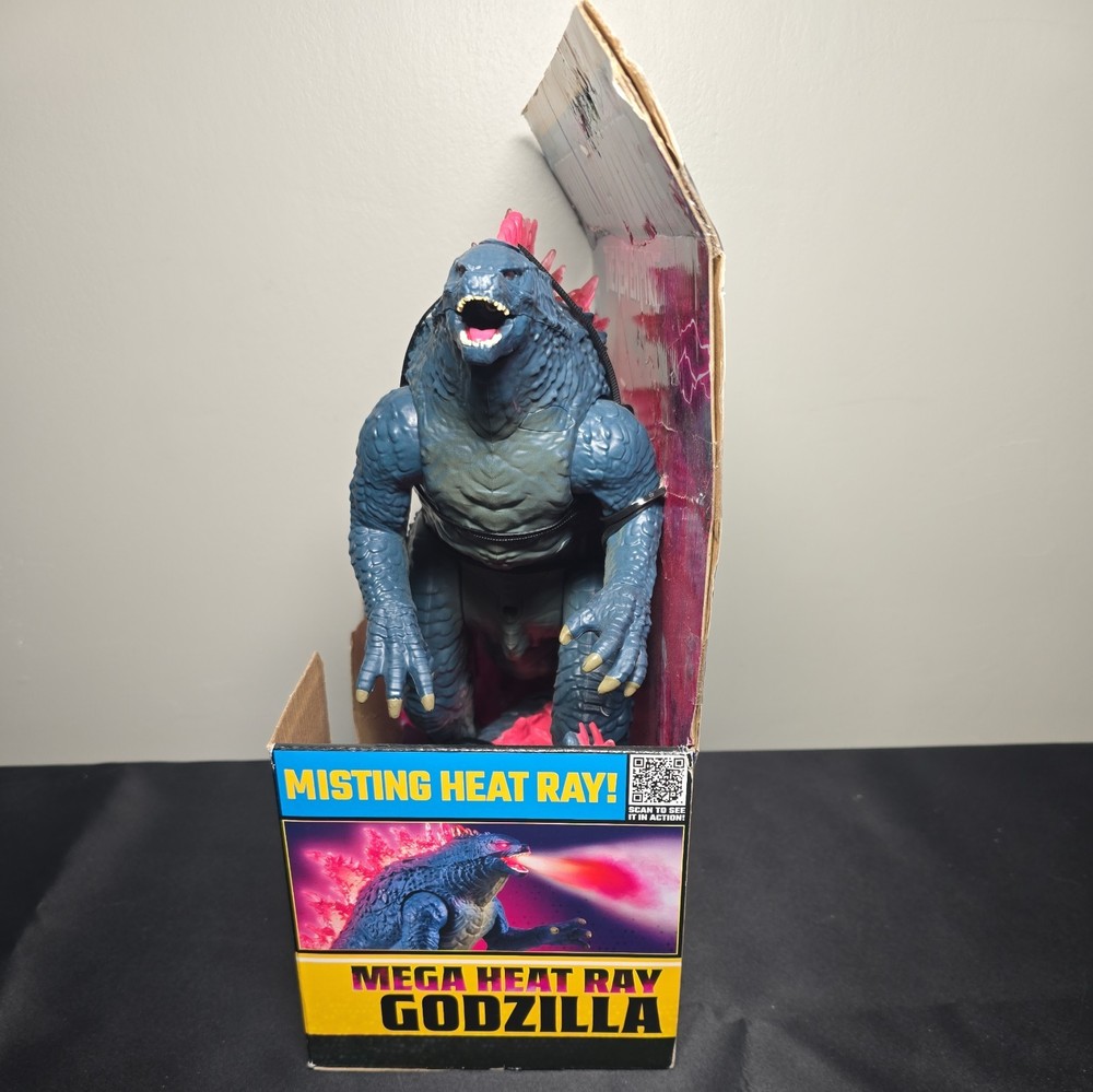 New. the box has some damage but the toy is not affected. Unleash the king of monsters with the PlayMates Godzilla Kong: The New Empire Mega Misting Heat Ray. This action figure captures the essence of Godzilla's power and comes equipped with a misting feature that lets you simulate the titan's fiery breath. With intricate detailing and multi-color accents, it's a true representation of the iconic monster from the "Godzilla" franchise. Ideal for collectors and fans alike, this boxed piece also makes a great gift for those who admire the boxing sport's depiction in pop culture. Whether displayed on a shelf or used to recreate epic battles, this Mega Misting Heat Ray Godzilla is sure to be a standout addition to any collection.