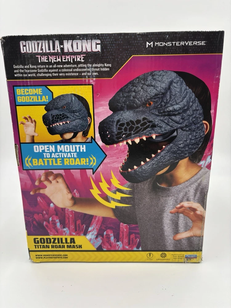 MonsterVerse Godzilla Kong The New Empire Godzilla Titan Roar Mask Tested & Works Requires 3 Button Cell LR44 Batteries New damaged Box Fast/Free Shipping T-shelf Box 10
