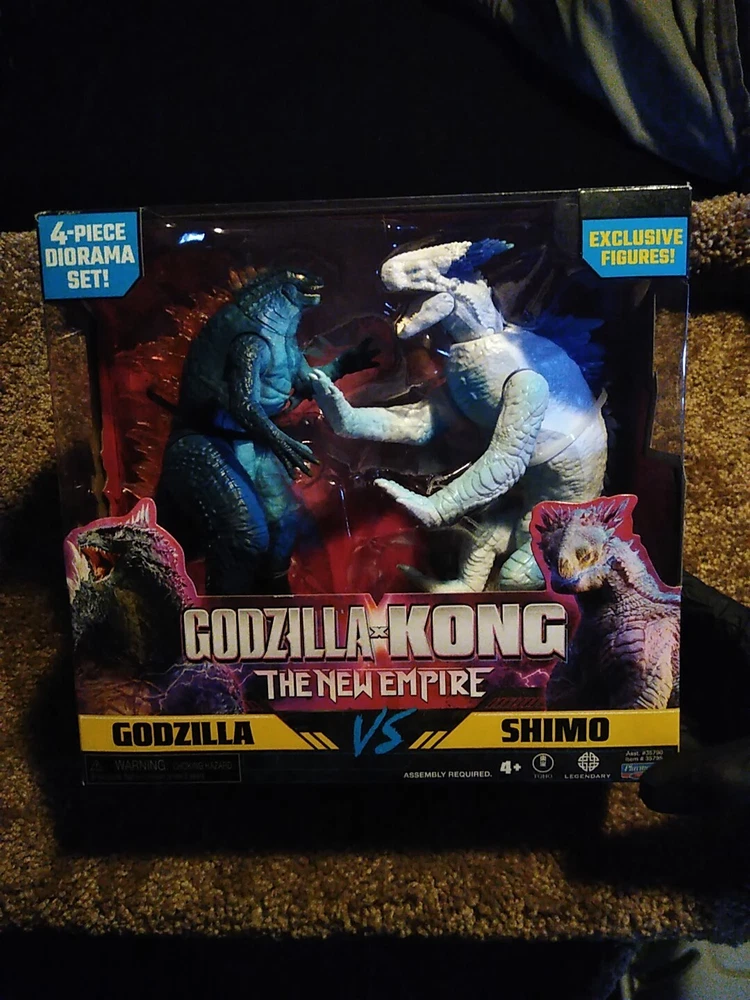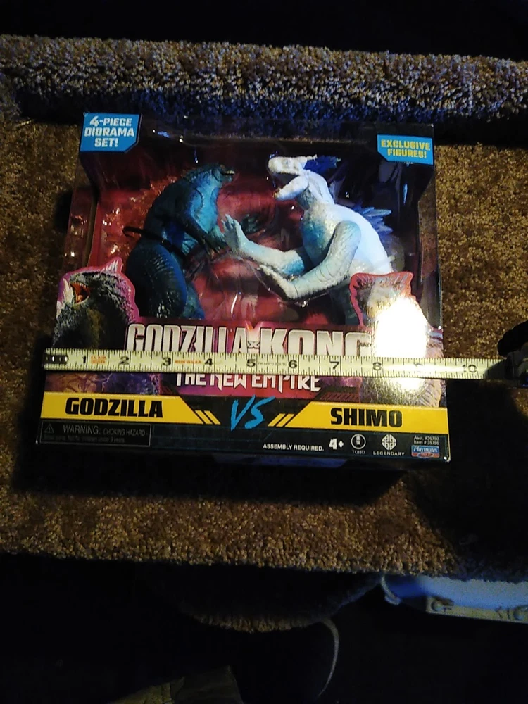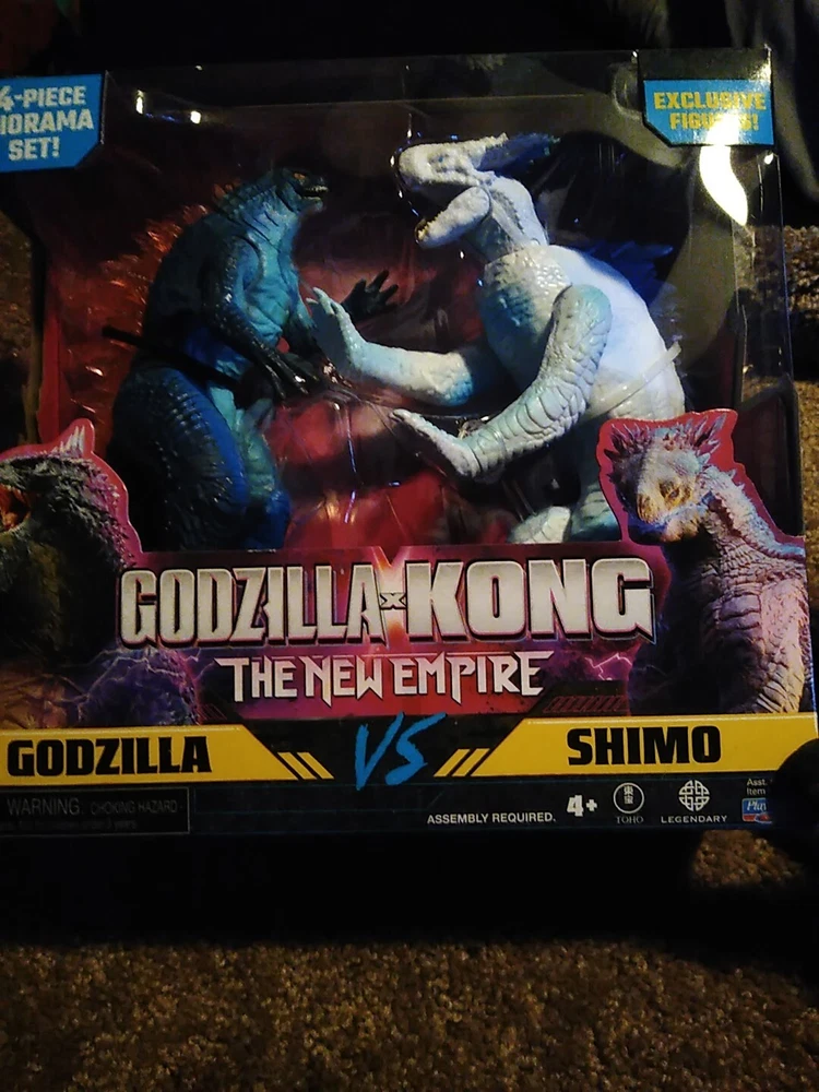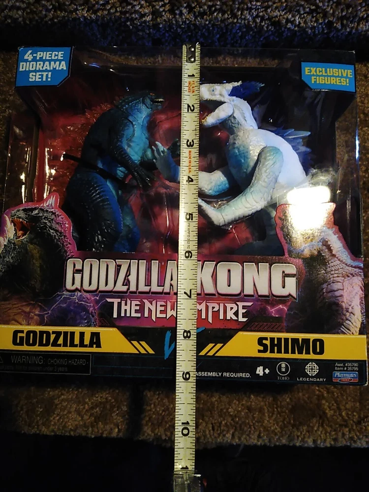 Bring home the ultimate showdown between two titans with the New Godzilla King The New Empire Godzilla vs Shimo exclusive figure box set. This highly detailed and collectible set features the iconic monsters in a fierce battle, with stunning articulation and intricate design. The figures are brand new and come straight from the manufacturer, ready to be displayed and played with. TOHO/Legendary/ Playmates. The set is perfect for fans of Godzilla, robots, monsters, and space toys. The recommended age range is 4 and up, making it a great gift for kids and adults alike. The figures are made by Playmates Toys, a trusted brand in the industry. Don't miss out on this epic addition to your collection.