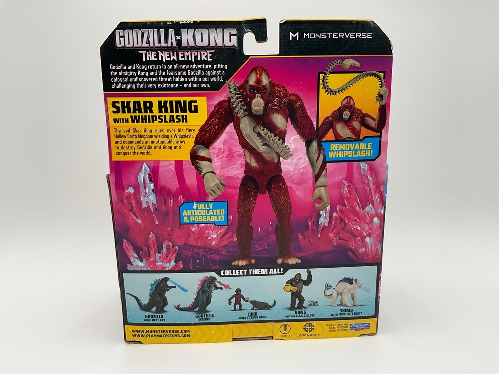 Return to Hollow Earth with Godzilla and Kong in an all-new adventure! When a colossal threat is discovered within our world, Godzilla and Kong must fight to protect their existence—and our own. The Godzilla x Kong 6” Skar King brings a dangerous new foe to your collection, with epic new details that capture his movie look. Set includes Skar King’s bone whipslash weapon and comes in a unique Godzilla X Kong package! The Godzilla x Kong 6” Skar King figure is highly detailed with intricate designs to capture the essence of Godzilla and Kong’s mighty new challenger. Bring the action home with Skar King’s bone whiplash weapon. The bone whiplash weapon is highly detailed to match his movie design adding a realistic element to your playtime or display! Standing 6” tall, the Skar King figure is ready to reign over any display or play setting. With multiple points of articulation, Skar King is ready for action, so you can recreate your favorite scenes from his epic battles!