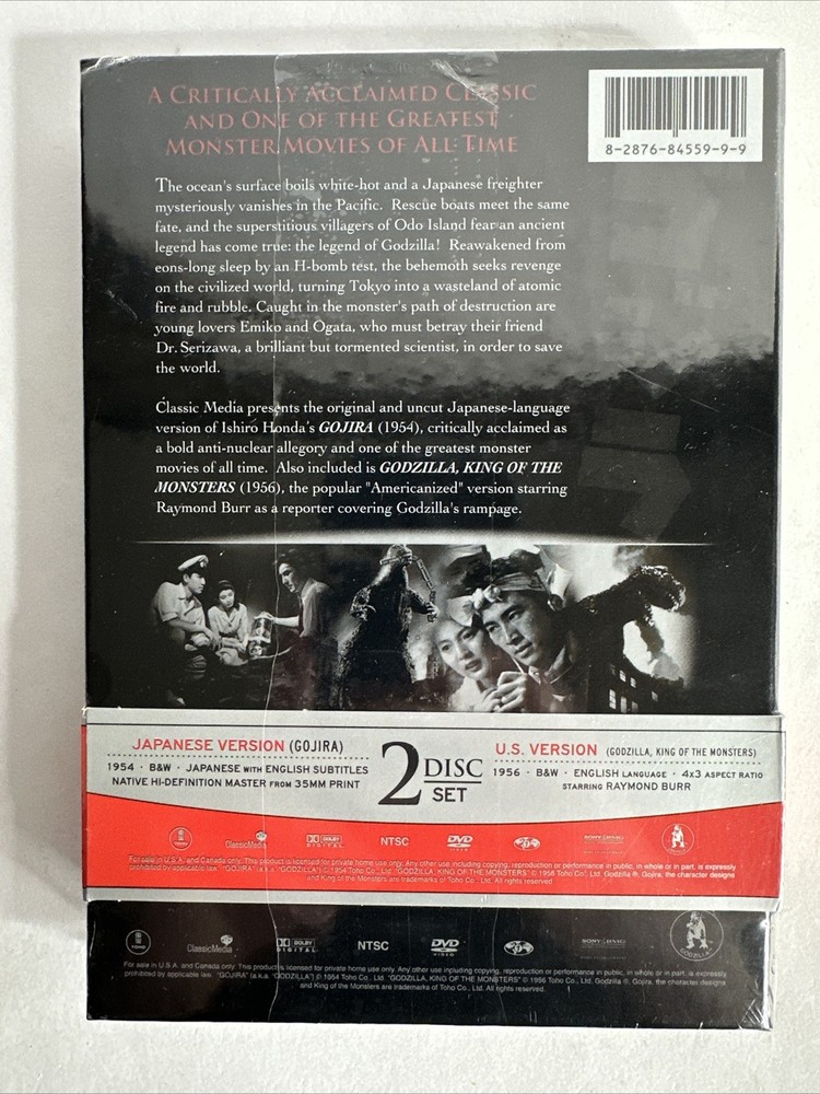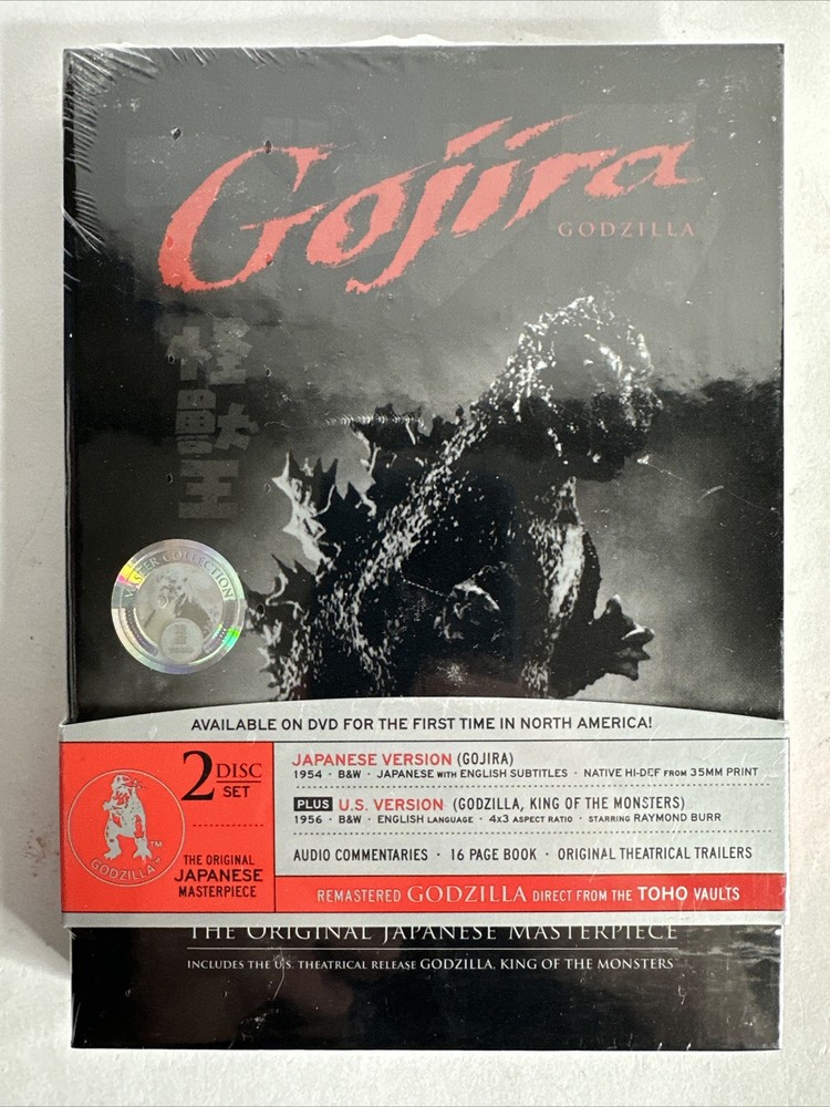 The product is a 2-Disc DVD set of "Gojira" (1956 Godzilla) featuring both the original Japanese and American versions. Directed by Ishiro Honda and starring Takashi Shimura, this sci-fi and fantasy film is in Japanese with NTSC video format. It comes in a tall DVD case and includes a book. The release year is 2006.