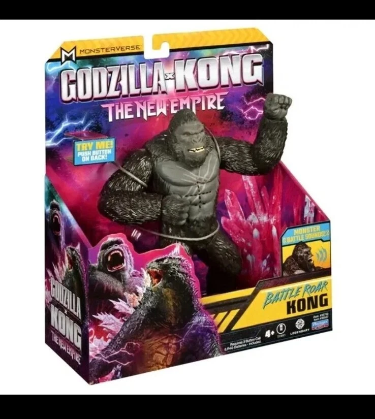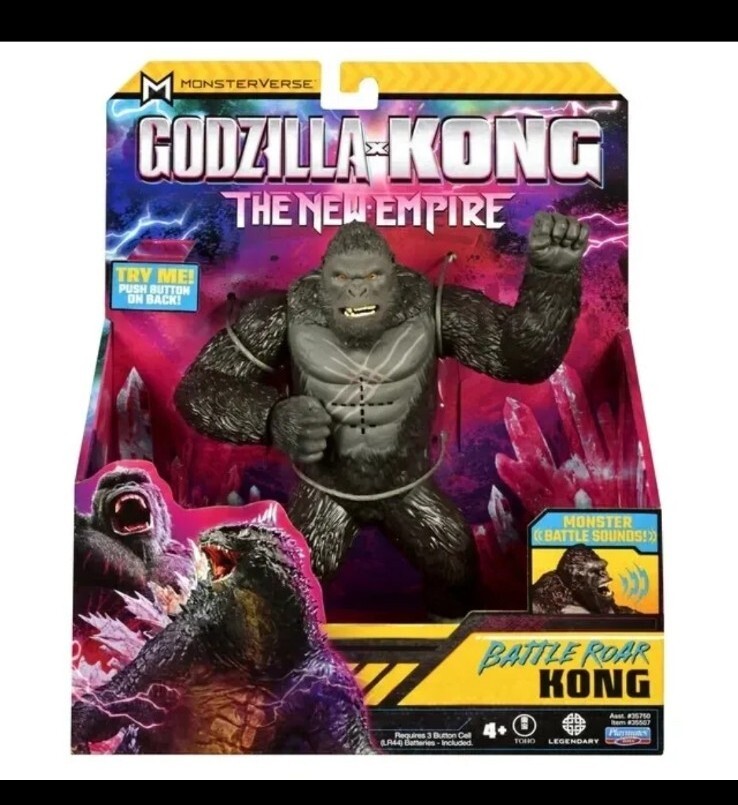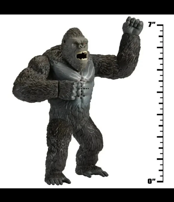 Take your collection to the next level with the highly sought-after King Kong figure from the latest Godzilla vs. Kong movie. This special edition, limited release action figure features fully jointed arms and legs, adjustable fingers, and even battle roar sound effects. The multicolor figure stands at 7 inches tall and comes in a boxed package. The item includes gloves and is made from durable ABS plastic material. Perfect for fans of the Monsterverse franchise, this original licensed reproduction item is a must-have for any collector. Don't miss out on this exclusive, battery-powered toy manufactured in China and designed by Playmates Toys. see pictures free shipping. [Tote R]