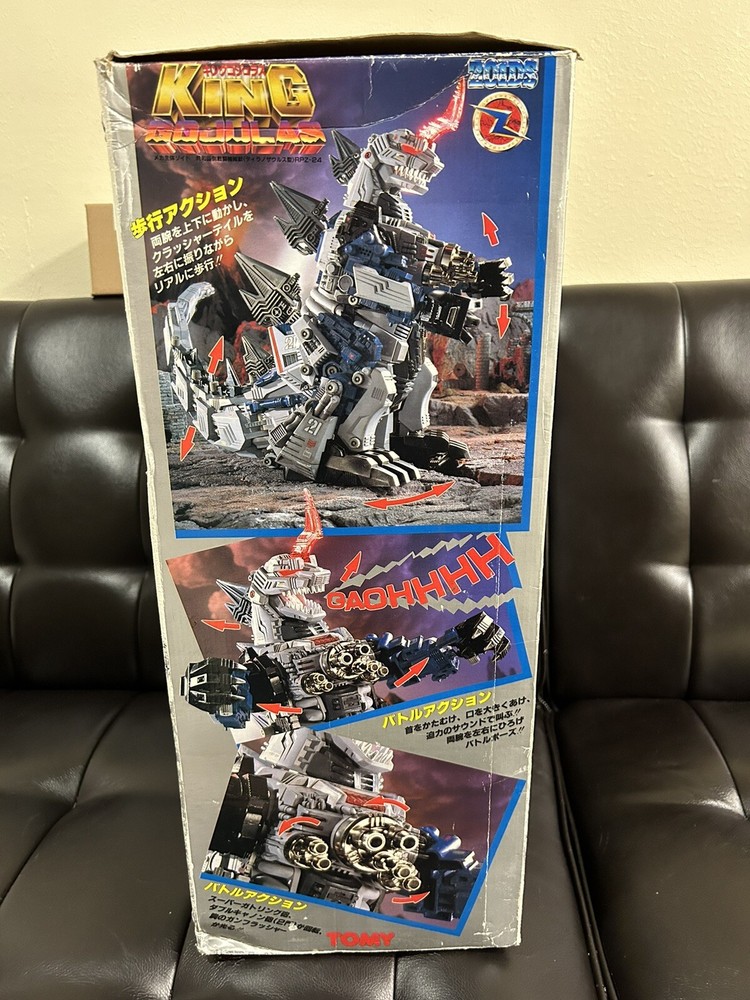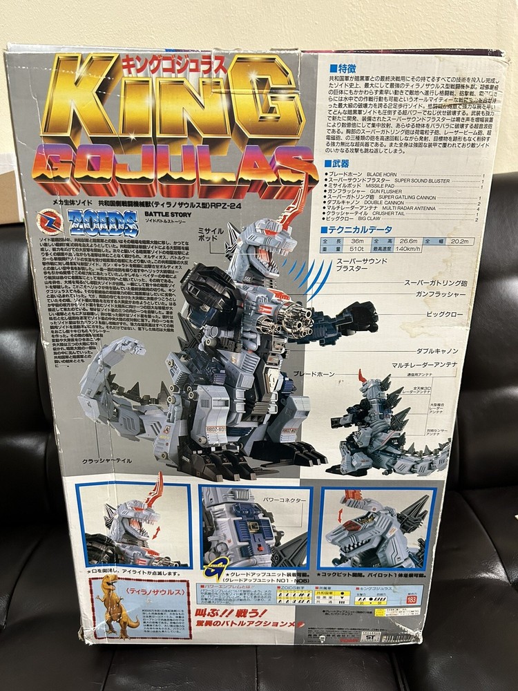 This is a rare and highly sought-after King Gojulas RPZ-24 ZOIDS action figure from the beloved anime and manga series. Made by TOMY in Japan during the 1980s, this vintage piece comes in its original box and is sold as is. With intricate details and a dynamic pose, this figure captures the essence of the iconic character Godzilla in its Zoids form. Perfect for collectors and fans of the series alike, this figure is a must-have addition to any collection. Whether you're a fan of the TV show or simply appreciate the artistry of Japanese toy manufacturing, this King Gojulas RPZ-24 ZOIDS action figure is sure to impress. Don't miss your chance to own this rare piece!