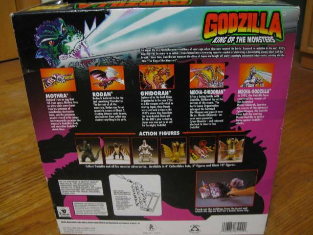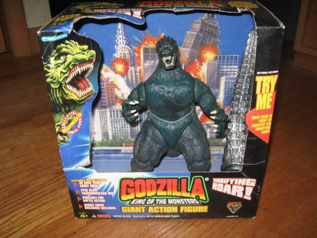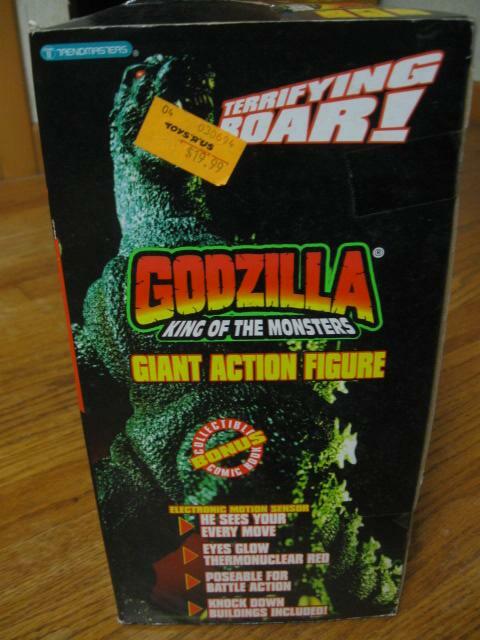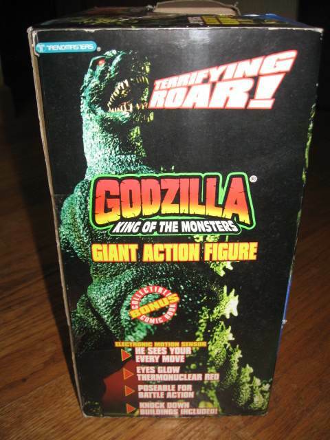 New in Box! Vintage Godzilla KING OF THE MONSTERS Giant Action Figure. Slight damage to box (see pictures) Made by Trendmasters in 1994. This is a discontinued item. Estate find - sold "as is". Electronic Motion Sensor + He Sees Your Every Move + Eyes Glow Thermonuclear Red + Poseable For Battle Action + Knock Down Buildings Included + Collectible Bonus Comic Book