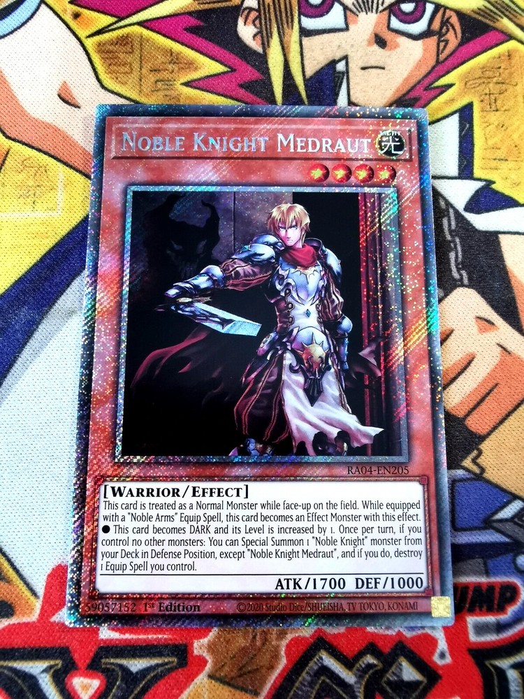 Dive into the world of duelists with the Noble Knight Medraut, a formidable addition to your Yu-Gi-Oh! TCG arsenal. With its Platinum-Secret rarity, this card is a must-have for both serious collectors and competitive players seeking to elevate their game. The English language card is ready to be summoned by master strategists looking to turn the tide in their favor. Whether you're looking to enhance your deck's performance or complete your collection, Medraut stands as a powerful contender in the realms of both. Its elegant design and formidable in-game abilities make it a standout choice for your next battle. Add this noble warrior to your collection and watch your opponents brace for the Medraut's might.