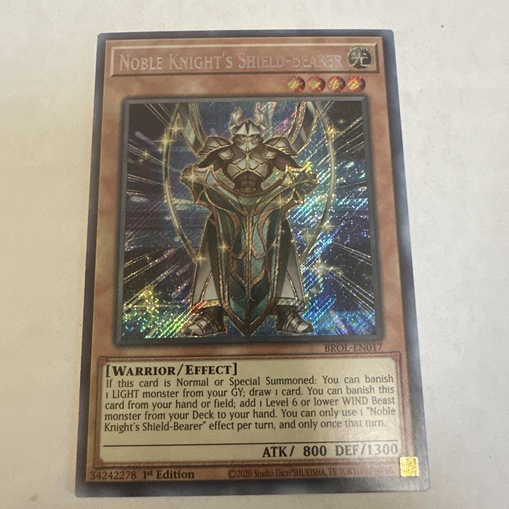 | Card Text | If this card is Normal or Special Summoned: You can banish 1 LIGHT monster from your GY; draw 1 card. You can banish this card from your hand or field; add 1 Level 6 or lower WIND Beast monster from your Deck to your hand. You can only use 1 "Noble Knight's Shield-Bearer" effect per turn, and only once that turn. |