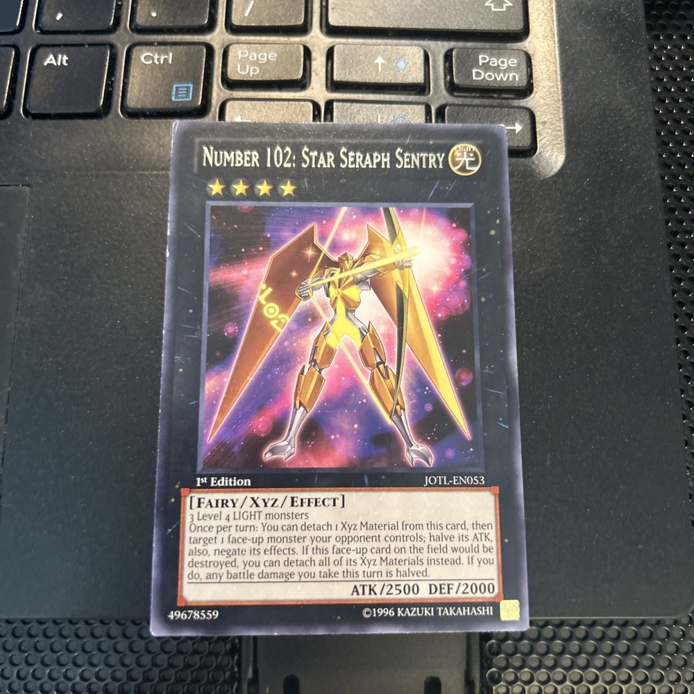 This listing will guarantee you a Near Mint, Rare, Number 102: Star Seraph Sentry from Judgment of the Light. The card will be in a card sleeve, top loader and team bag. All of which will be placed inside a semi sturdy card and envelope then shipped. Yu-Gi-Oh - Number 102: Star Seraph Sentry, JOTL-EN053, 1st Edition, Rare, Near Mint Please keep in mind, if I have multiple of the same card or reuse this listing in the future the picture above my not be the exact card that will be shipped. But the card will be a Near Mint single with the same Name, Card number, and Rarity as listed in the title and at the top of the description. Judgment of the Light set description: Includes cards used by Yuma Tsukumo, Reginald Kastle, Rio Kastle, Kite Tenjo, Orbital 7, Dumon, Mizar and Vector. The TCG version also includes cards used by Atticus Rhodes, Yusei Fudo and Devon Knox. Includes the first new Synchro Monsters in a core booster since Extreme Victory. Introduces the "Bujin", "Star Seraph", "Traptrix", "Super Defense Robot" and "Umbral Horror" archetypes/series. Includes new members and support for the "Archfiend", "Duston", "Fire Fist", "Plant Princess", "Galaxy", "Mecha Phantom Beast", "Number", "Number C", "Photon", "Prophecy", "Shark" and "Trap Hole" archetypes/series. The TCG version also includes new members and support for the "Noble Knight", "Junk", "Fire King", "Coach" and "Madolche" archetypes. In the TCG there are 9 cards per pack, 24 booster packs per box and 12 display boxes per case. The set contains 100 cards or 106 in the Master Set. This is comprised of: 1 Ghost Rare 5 Ultimate Rares 8 Secret Rares 10 Ultra Rares 14 Super Rares 20 Rares 48 Commons