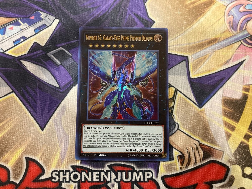 Number 62: Galaxy-Eyes Prime Photon Dragon BLLR-EN070 1st Ultra Rare NM Yugioh Number 62: Galaxy-Eyes Prime Photon Dragon BLLR-EN070 1st Ultra Rare Card Card is in NM Condition Shipped in Top Loader and Sleeve Please Contact me if there is anything wrong with your order or shipping before leaving feedback. Please give me a chance to fix the problem. Thanks! Please pay within 3 days of winning an auction! I will only ship to Canada and the United States Combined shipping, highest shipping price plus $0.50 per each additional item won All orders over $100 will require tracking. Please wait for an invoice before paying in this case. For orders within Canada this will cost $12 and for orders going to the United States this will cost $15 Card Grading Legend M - Mint NM - Near Mint LP - Lightly Played MP - Moderately Played HP- Heavily Played DMG - Damaged _gsrx_vers_1608 (GS 9.5 (1608))