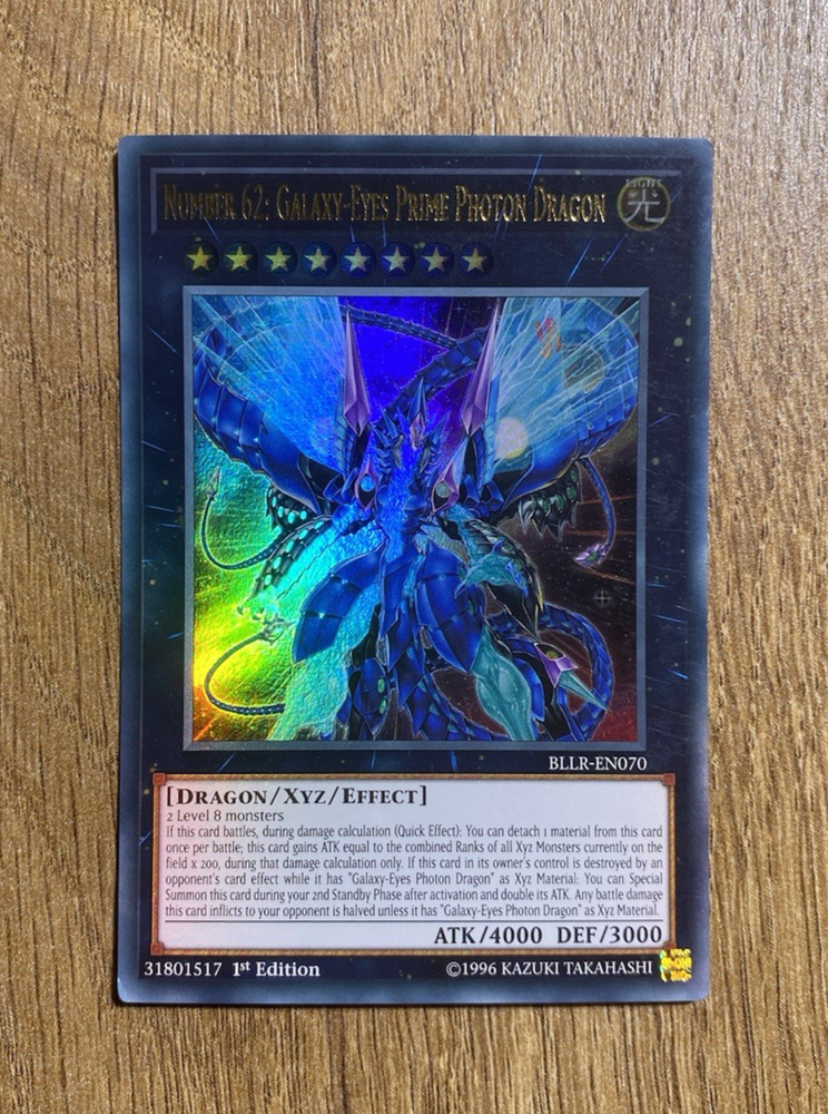 Number 62: Galaxy-Eyes Prime Photon Dragon | 1st Edition NM/LP Condition (Please see images) | Ultra Rare Sleeved BLLR-EN070 If you have any requests, please do contact me and I will be more than happy to help :)