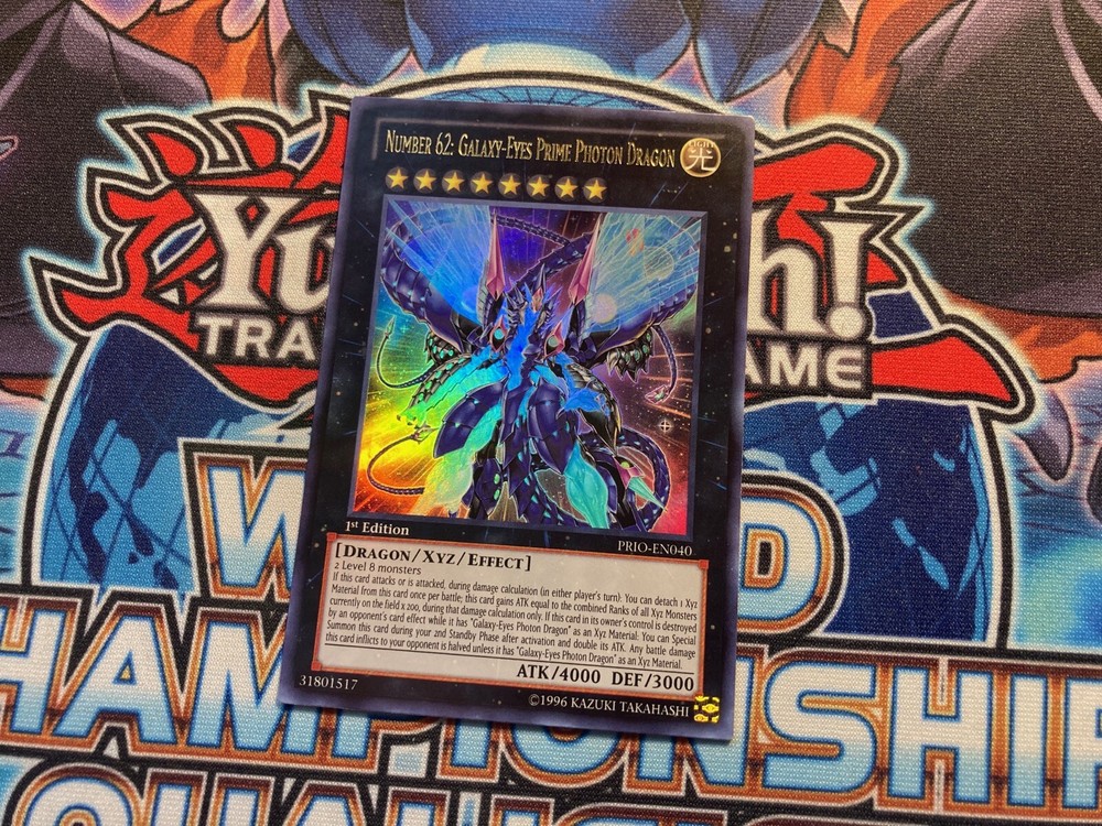 Number 62: Galaxy-Eyes Prime Photon Dragon PRIO-EN040 1st Ultra Rare NM Yugioh Number 62: Galaxy-Eyes Prime Photon Dragon PRIO-EN040 1st Ultra Rare Card Card is in NM Condition Shipped in Top Loader and Sleeve Please Contact me if there is anything wrong with your order or shipping before leaving feedback. Please give me a chance to fix the problem. Thanks! Please pay within 3 days of winning an auction! I will only ship to Canada and the United States Combined shipping, highest shipping price plus $0.50 per each additional item won All orders over $100 will require tracking. Please wait for an invoice before paying in this case. For orders within Canada this will cost $12 and for orders going to the United States this will cost $15 Card Grading Legend M - Mint NM - Near Mint LP - Lightly Played MP - Moderately Played HP- Heavily Played DMG - Damaged _gsrx_vers_1326 (GS 8.4.1 (1326))