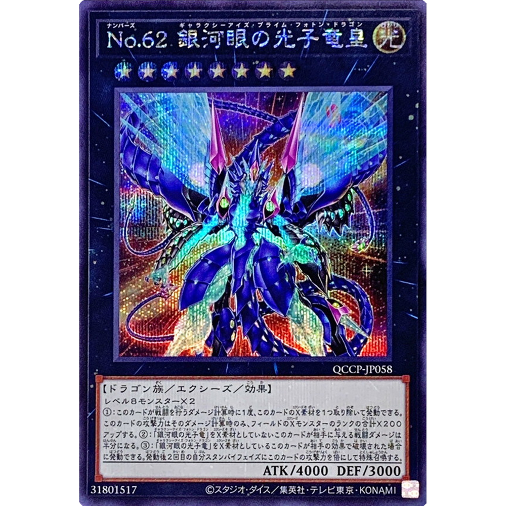 Description Number 62: Galaxy-Eyes Prime Photon Dragon Secret QCCP-JP058 side:Pride Condition : Near Mint Condition - As a Trading Cards collector myself, I can check the condition exactly. 【NM】Near Mint (4/4): Display minimal or no wear or damage. All surfaces and edges are pristine and appear “fresh out of the pack. 【EX】Excellent (3/4): Have slight corner and edge wear along with minor scratches on the surface, but no other flaws. 【VG】Very good (2/4): Have discernible flaws such as border and corner wear, noticeable scratches and creases, slight bends, notching, layering, and moderate discoloration or whitening. 【PR】Poor (1/4): Show a massive amount of wear and damage. Corners and edges will be rounded, chipped, or fuzzy, and there will be major discoloration, layering, notching, creasing, and scratches. - I follow “eBay card conditions and guidelines”. - Click here for details : https://pages.ebay.com/cardconditions/ Shipping Economy Shipping Japan Post Air Mail : takes about 1~2 weeks, +Handing time No tracking. Standard Shipping Japan Post Air Mail : takes about 1~2 weeks, +Handing time With tracking. Expedited Shipping FedEx or EMS : takes about 1~4 days, +Handing time With tracking. - Use a loader, waterproof pack, and put it in a cushioned envelope. - You can save shipping fees when you buy multiple items. No charge shipping fees for additional items. International Buyers - Please Note: Import duties, taxes and charges are not included in the item price or shipping charges. These charges are the buyer's responsibility. Please check with your country's customs office to determine what these additional costs will be prior to bidding/buying. These charges are normally collected by the delivering freight(shipping) company or when you pick the item up -do not confuse them for additional shipping charges. We do not mark merchandise values below value or mark item as "gift" -US and international government regulations prohibit such behavior.